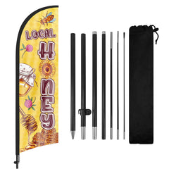 - This Local Honey feather flag pole kit includes 1 swooper flag+6 rods+1 ground stake and comes with 1 carry bag. They can be quickly set up and taken down, requiring minimal effort.