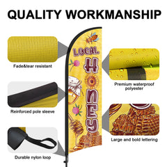 - These Local Honey feather flags are designed to withstand various weather conditions, high-quality aluminum and fiberglass pole, tear resistant polyester fabric making it sturdy and heavy-duty to be held up well