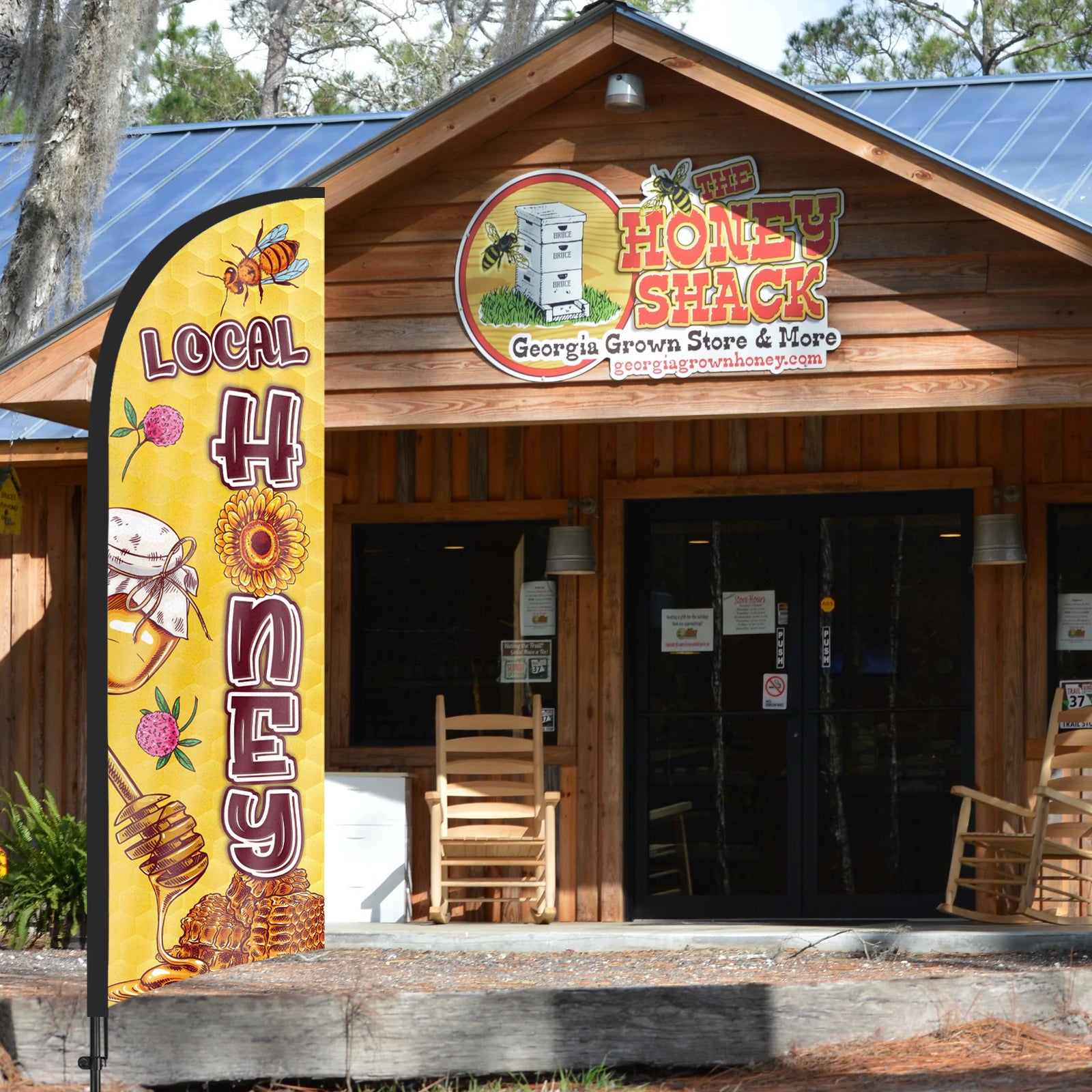 - The Local Honey sign offer a cost-effective advertising solution compared to other traditional forms of outdoor advertising. This FLocal Honey flag size is (8.2ft/98in) tall and (1.8ft/22in) wide, visible enough from far away