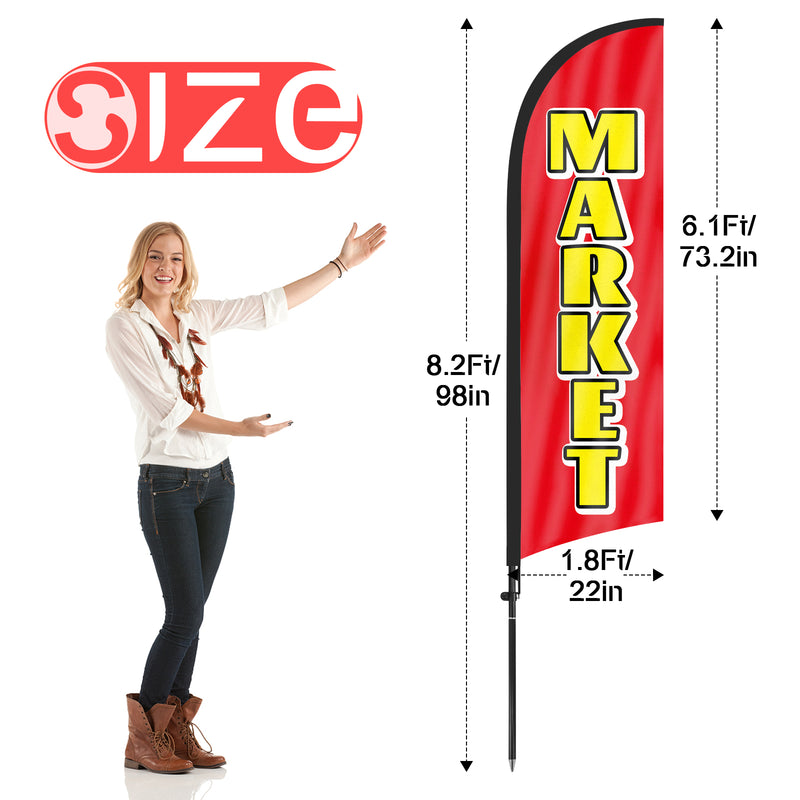 - 【Cost-Effective Advertising】The sign offer a cost-effective advertising solution compared to other traditional forms of outdoor advertising. This flag size is (8.2ft/98in) tall and (1.8ft/22in) wide, visible enough from far away, ensures your business stands out from the crowd, grabbing attention and increasing foot traffic.