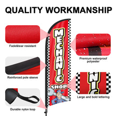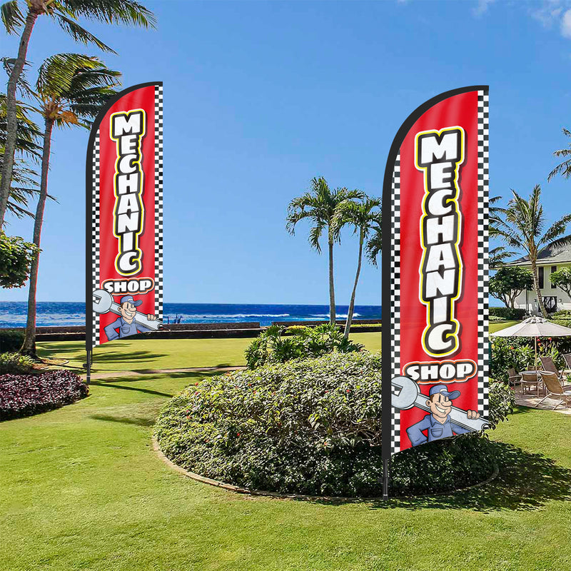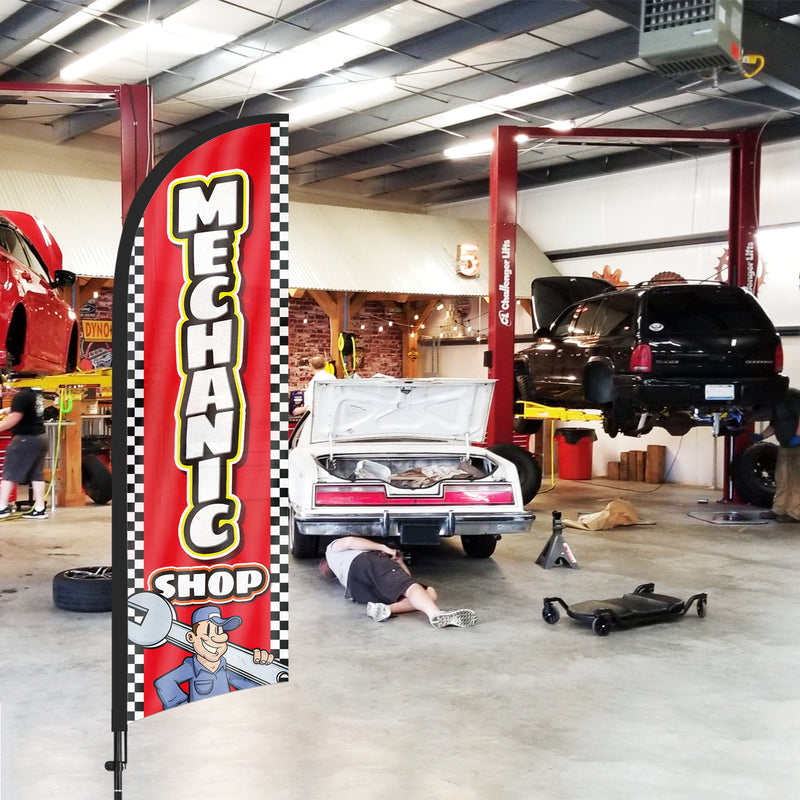 - 【Attention-Grabbing】Mechanic Shop feather flags stand tall and sway with the wind, making them highly visible and attention-grabbing. The Mechanic Shop flags’ unique shape and vibrant colors make them stand out in crowded environments, attracting many potential customers from a distance.