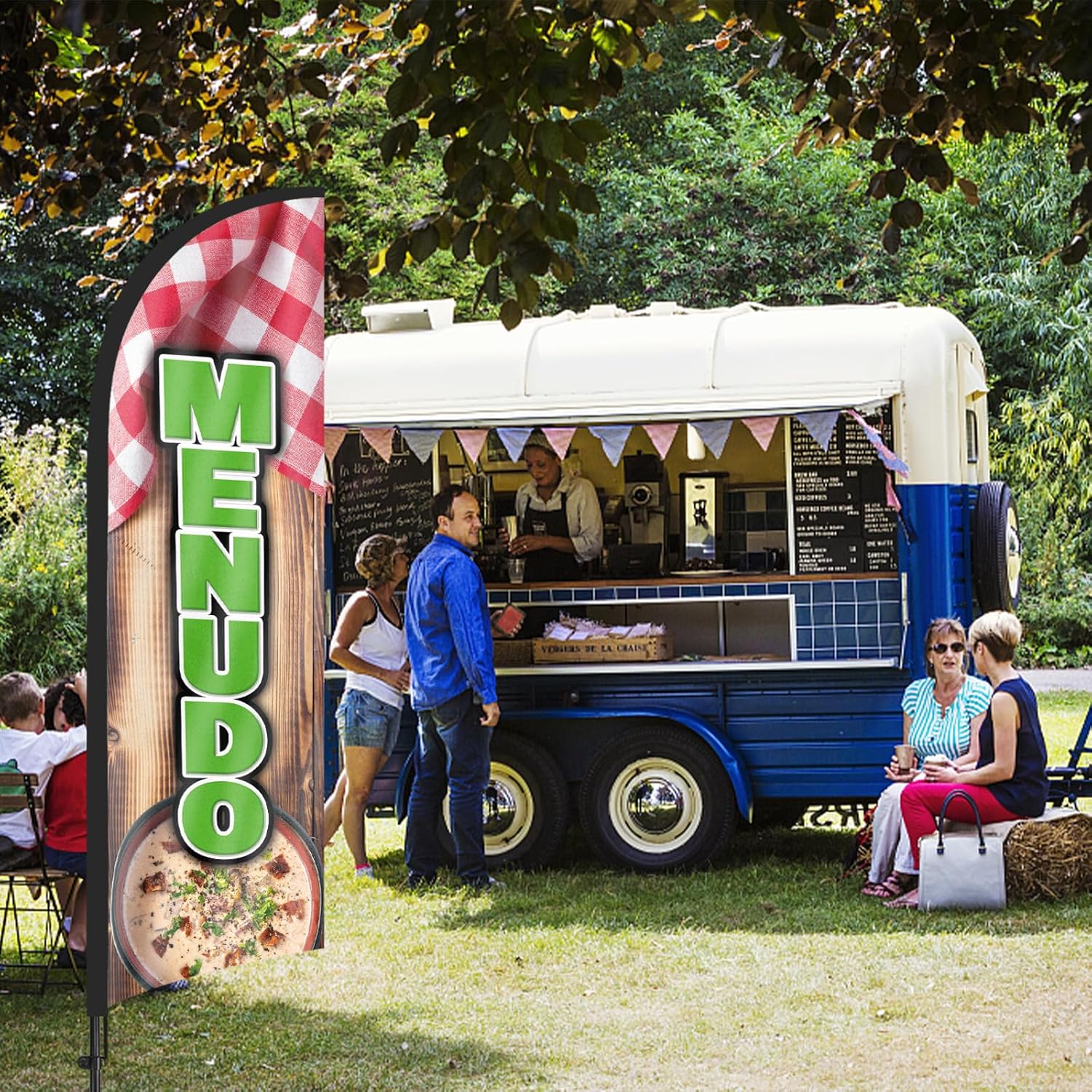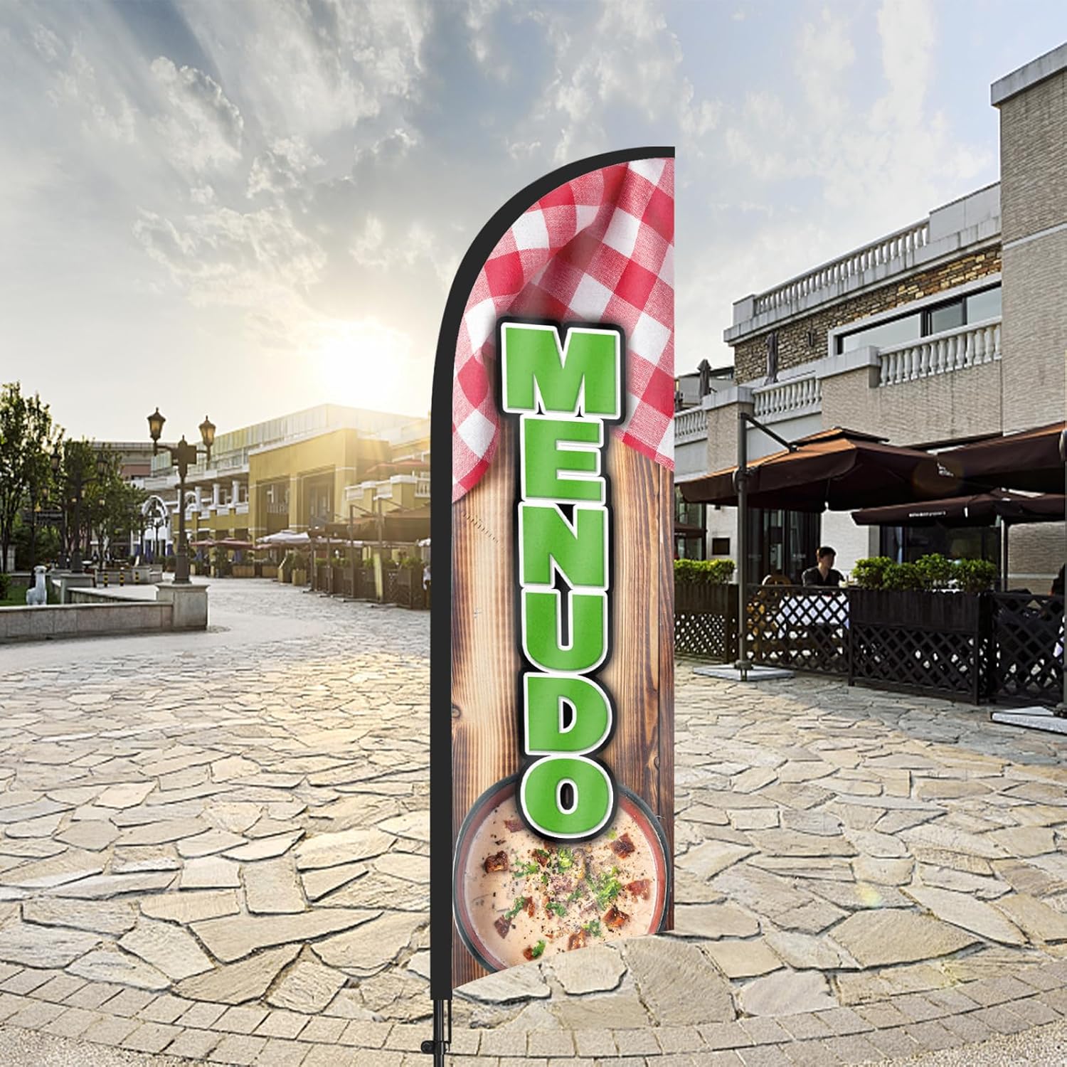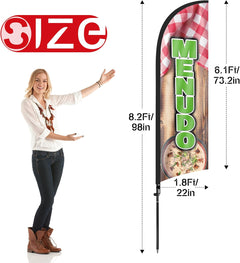 - 【Cost-Effective Advertising】The Menudo sign offer a cost-effective advertising solution compared to other traditional forms of outdoor advertising. This Menudo flag size is (8.2ft/98in) tall and (1.8ft/22in) wide, visible enough from far away, ensures your business stands out from the crowd, grabbing attention and increasing foot traffic.