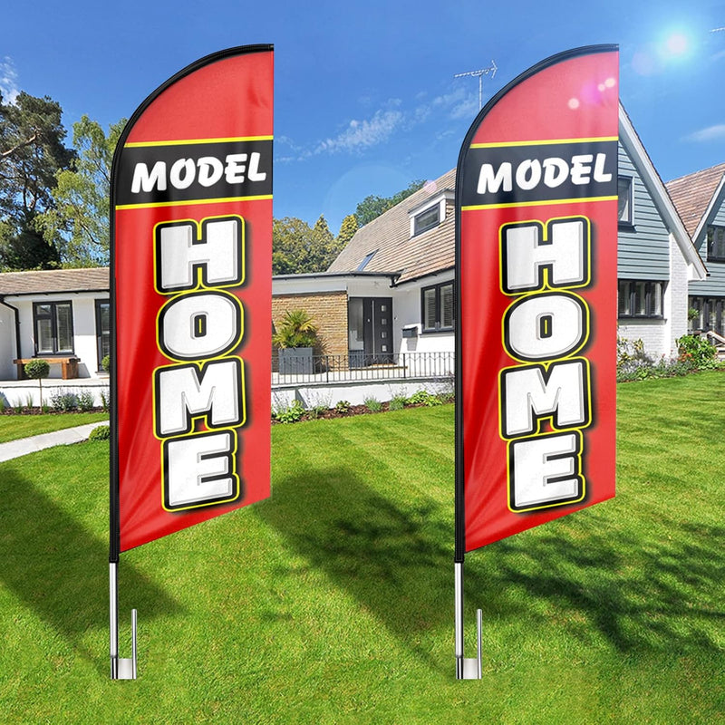 🏠【Excellent Welcome Home Sign】As real estate for sale signs, the Model Home feather flag is very large (8Ft/96in x 2 Ft/25in), visible even from a distance. You can place the feather flag in front of your business, at the entrance, or on the sidewalk, making it an excellent advertising tool for for sale sign posts.