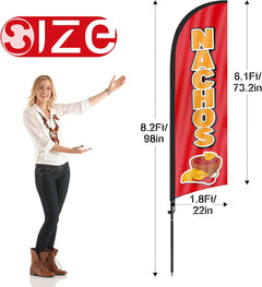 - 【Cost-Effective Advertising】The Nachos sign offer a cost-effective advertising solution compared to other traditional forms of outdoor advertising. This Nachos flag size is (8.2ft/98in) tall and (1.8ft/22in) wide, visible enough from far away, ensures your business stands out from the crowd, grabbing attention and increasing foot traffic.