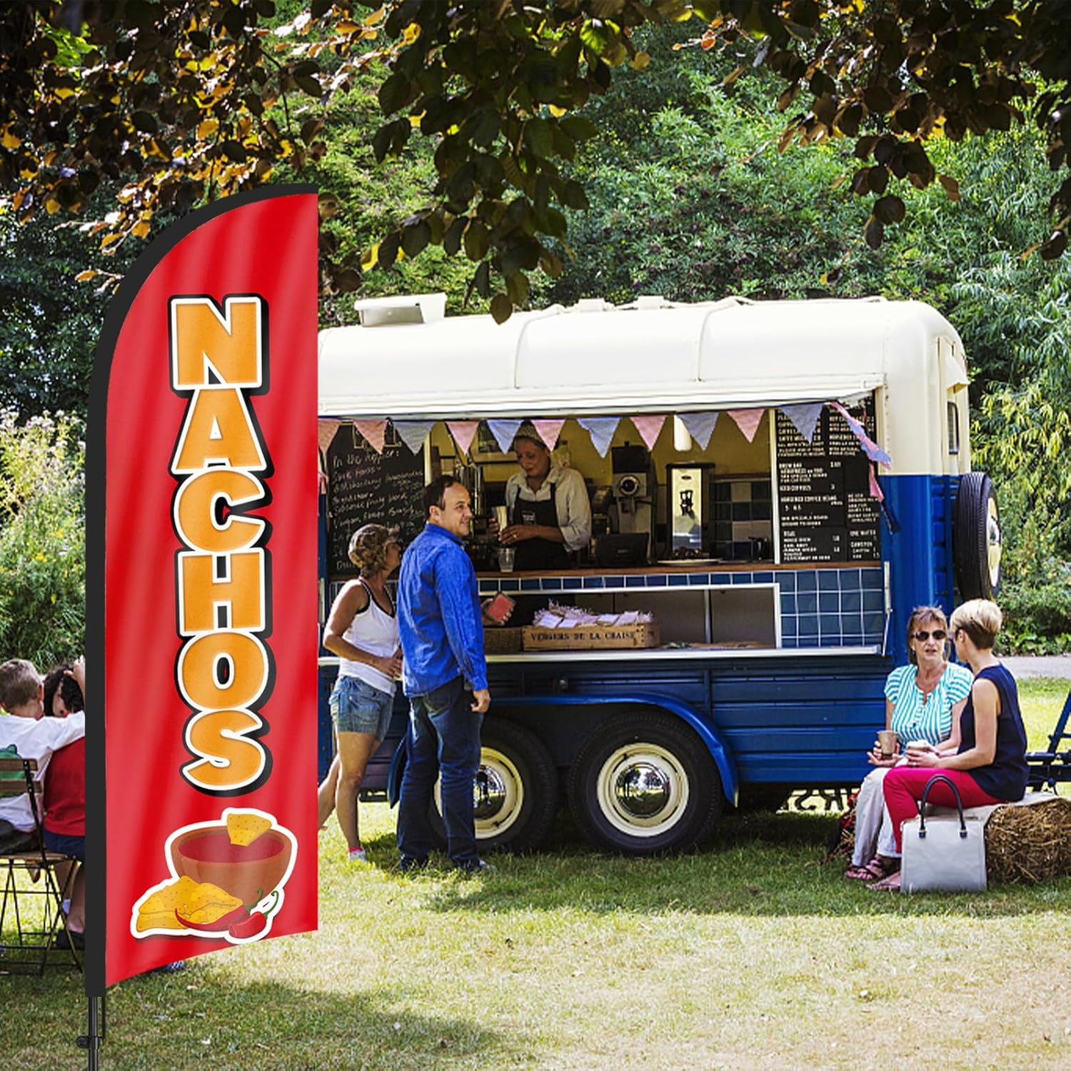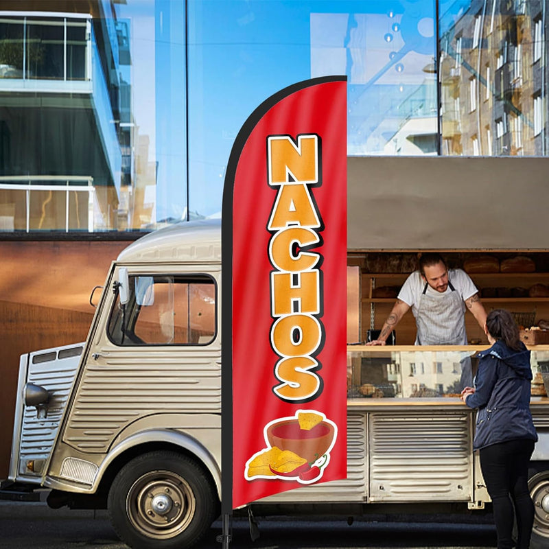 - 【Attention-Grabbing】Nachos feather flags stand tall and sway with the wind, making them highly visible and attention-grabbing. The Nachos flags’ unique shape and vibrant colors make them stand out in crowded environments, attracting many potential customers from a distance.