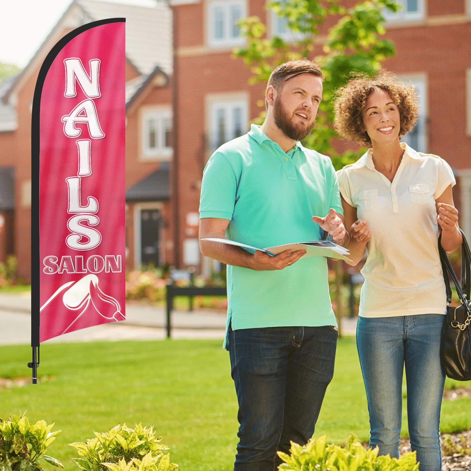 - 【Attention-Grabbing】Nail shop sign stand tall and sway with the wind, making them highly visible and attention-grabbing. The Nails Salon flags’ unique shape and vibrant colors make them stand out in crowded environments, attracting many potential customers from a distance.