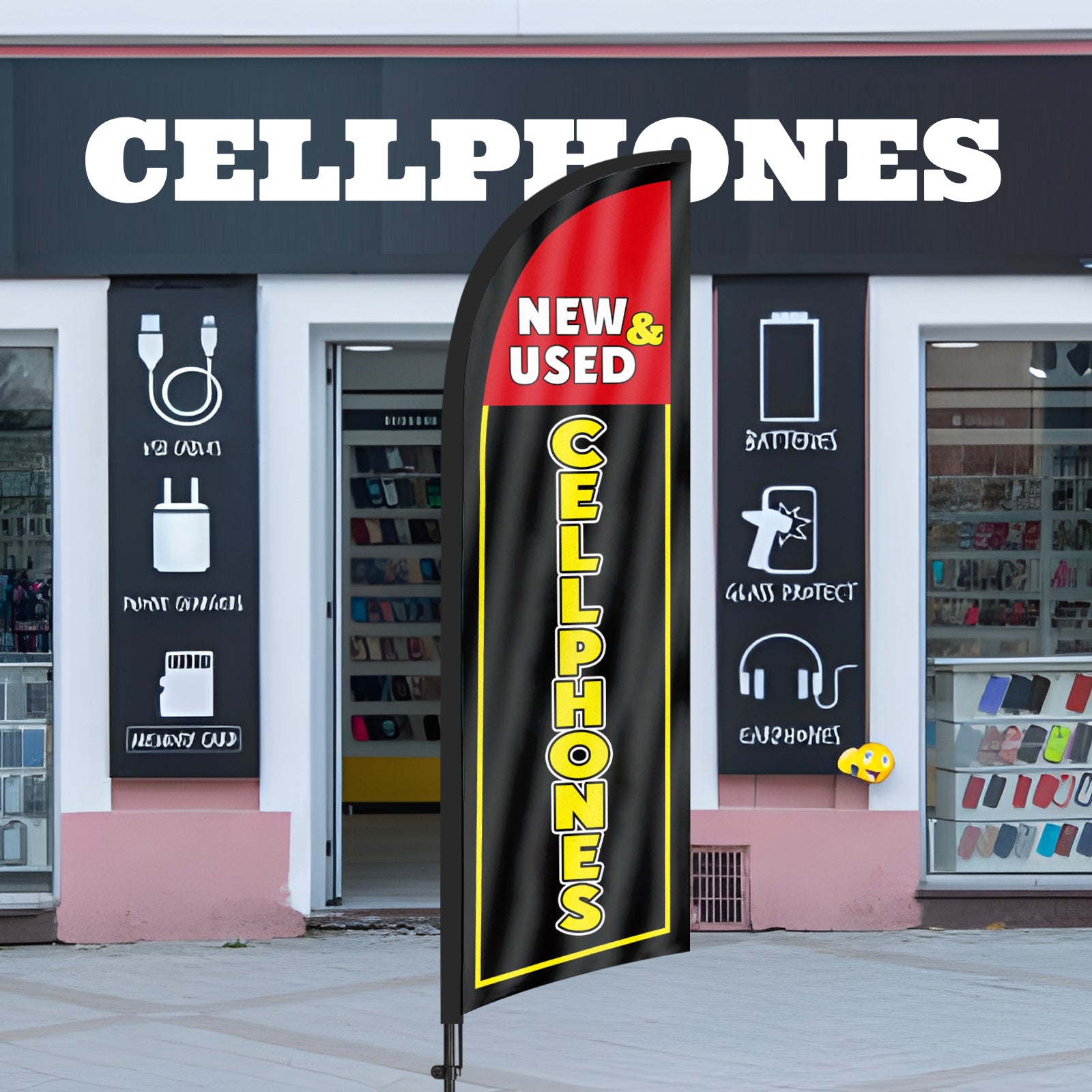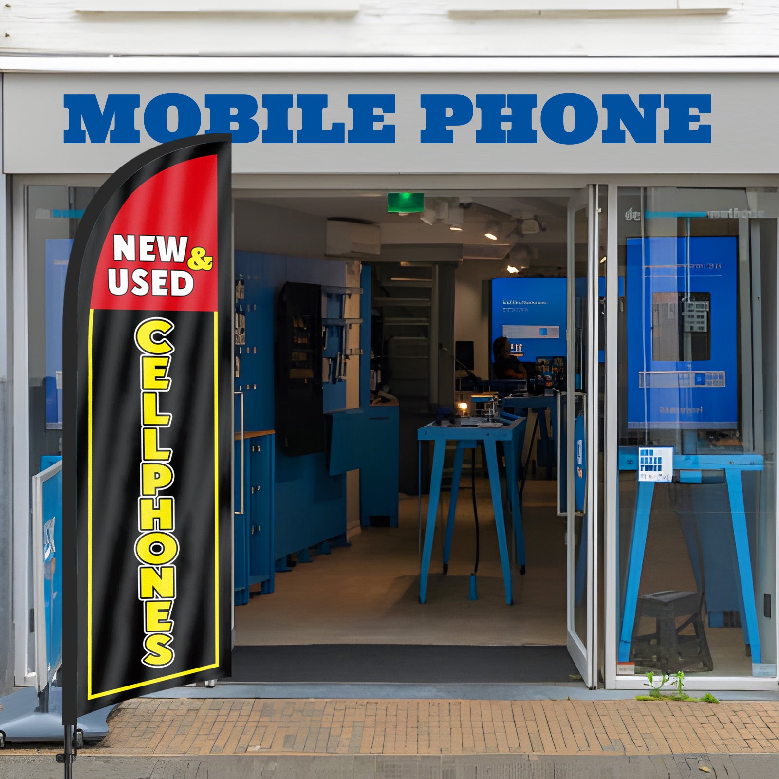 - 【Attention-Grabbing】New&Used Cellphones feather flags stand tall and sway with the wind, making them highly visible and attention-grabbing. The New&Used Cellphones flags’ unique shape and vibrant colors make them stand out in crowded environments, attracting many potential customers from a distance.