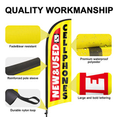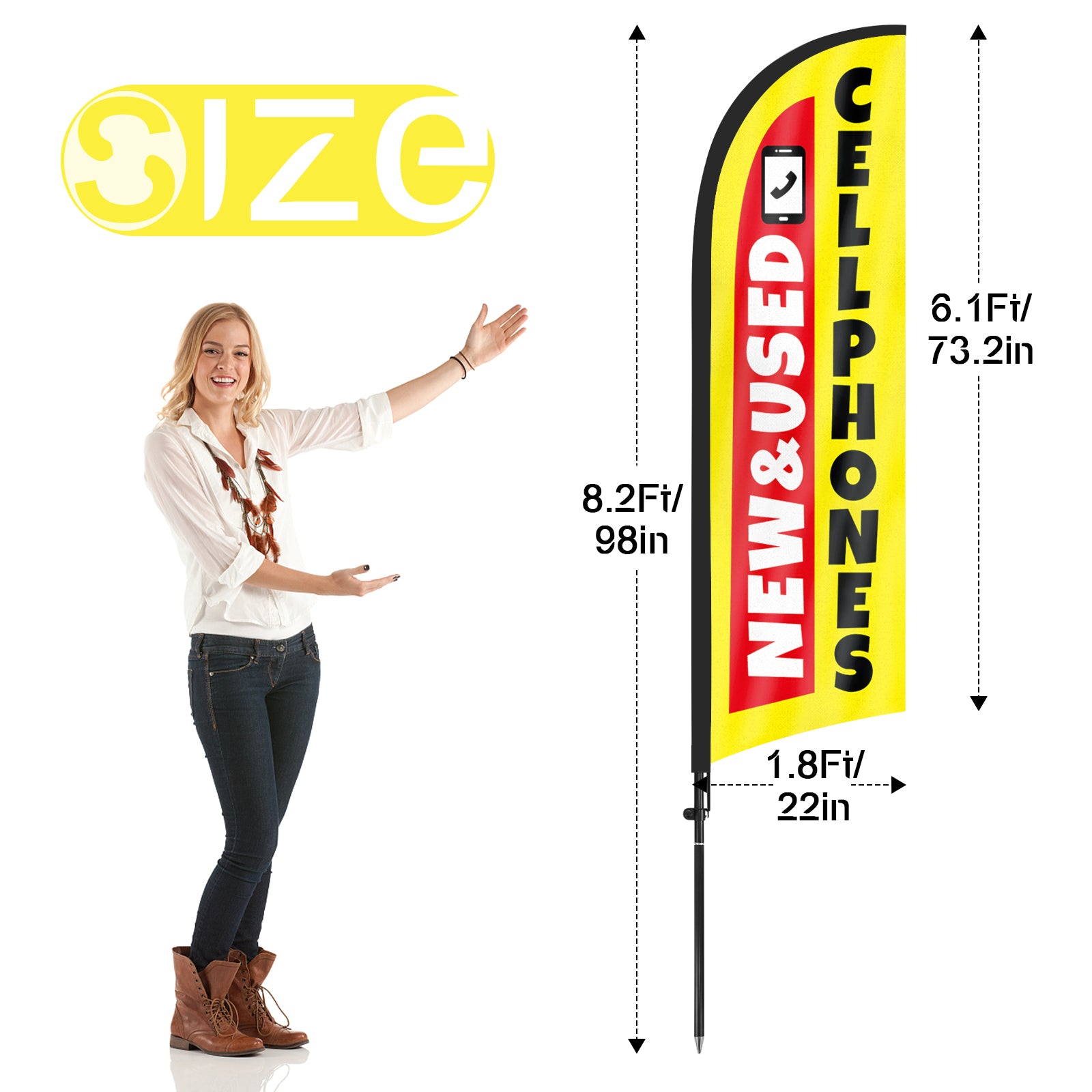 - 【Weather Resistance】These New&Used Cellphones feather flags are designed to withstand various weather conditions, high-quality aluminum and fiberglass pole, tear resistant polyester fabric making it sturdy and heavy-duty to be held up well even in rain, snow, sleet and strong winds.