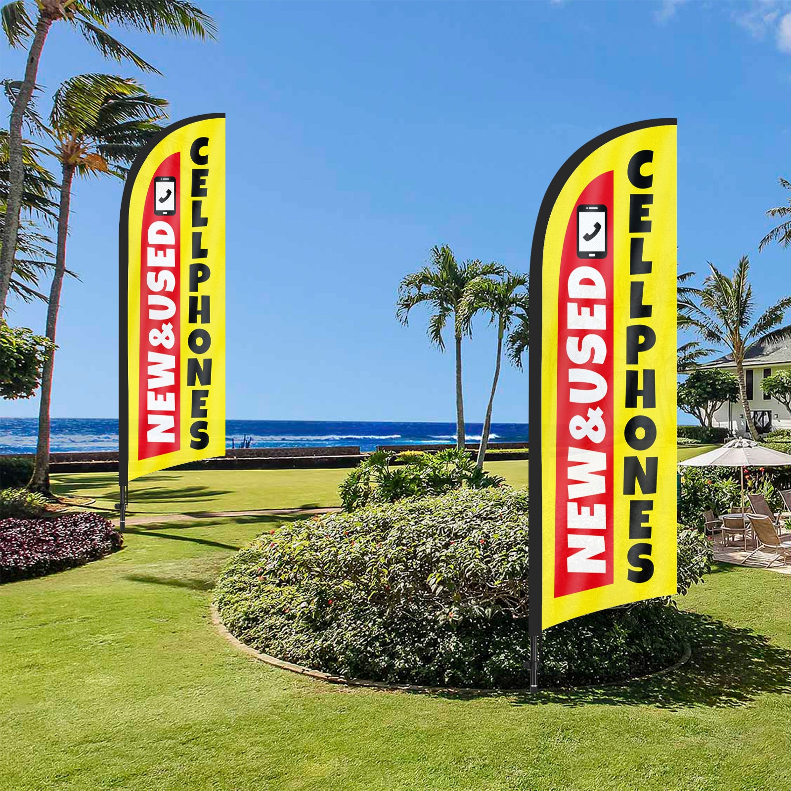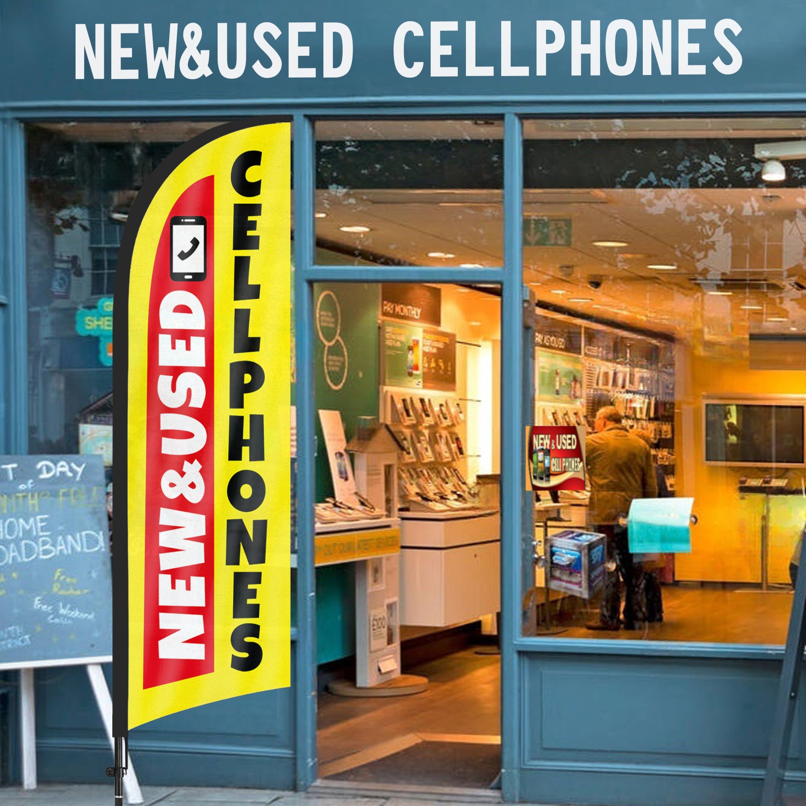- 【Attention-Grabbing】New&Used Cellphones feather flags stand tall and sway with the wind, making them highly visible and attention-grabbing. The New&Used Cellphones flags’ unique shape and vibrant colors make them stand out in crowded environments, attracting many potential customers from a distance.