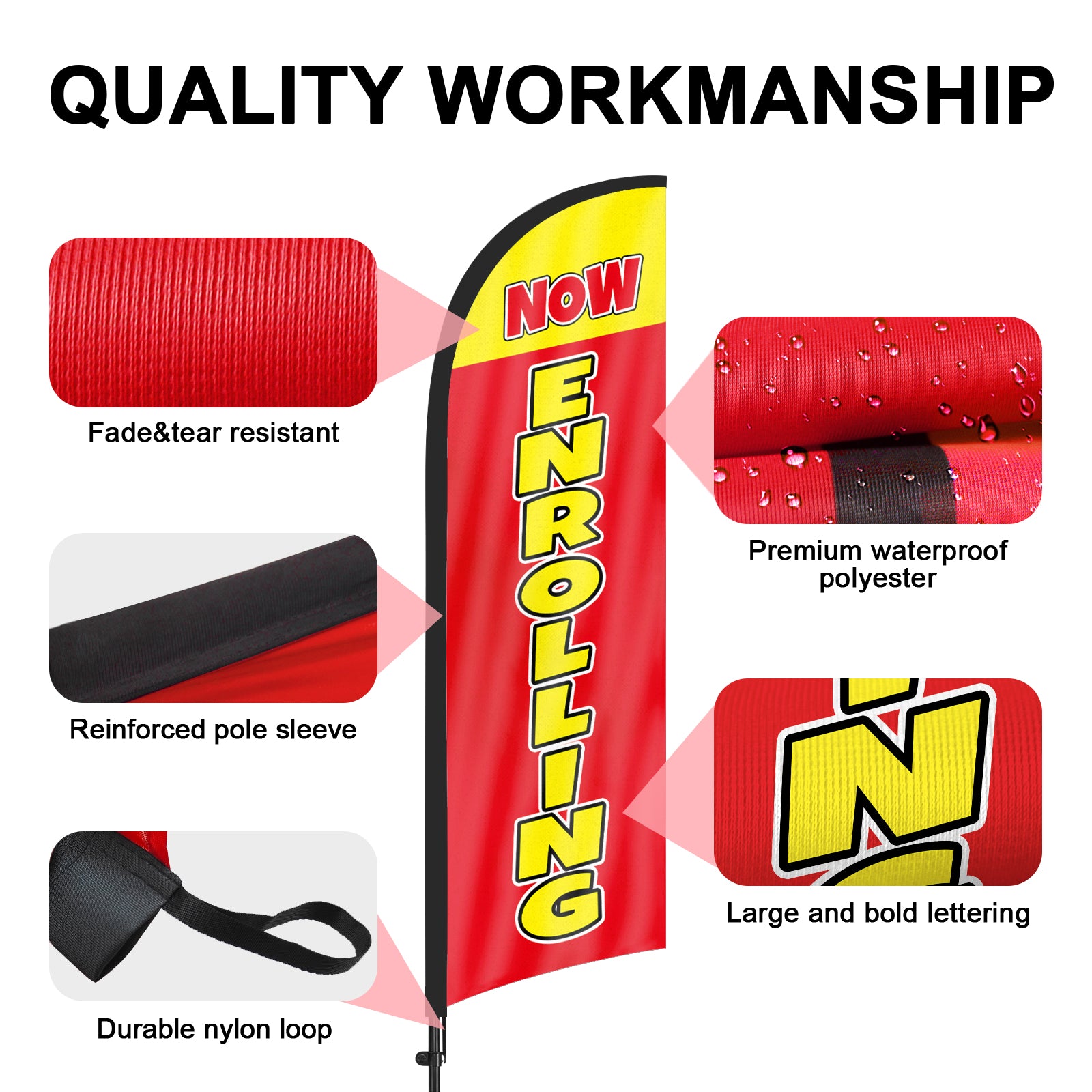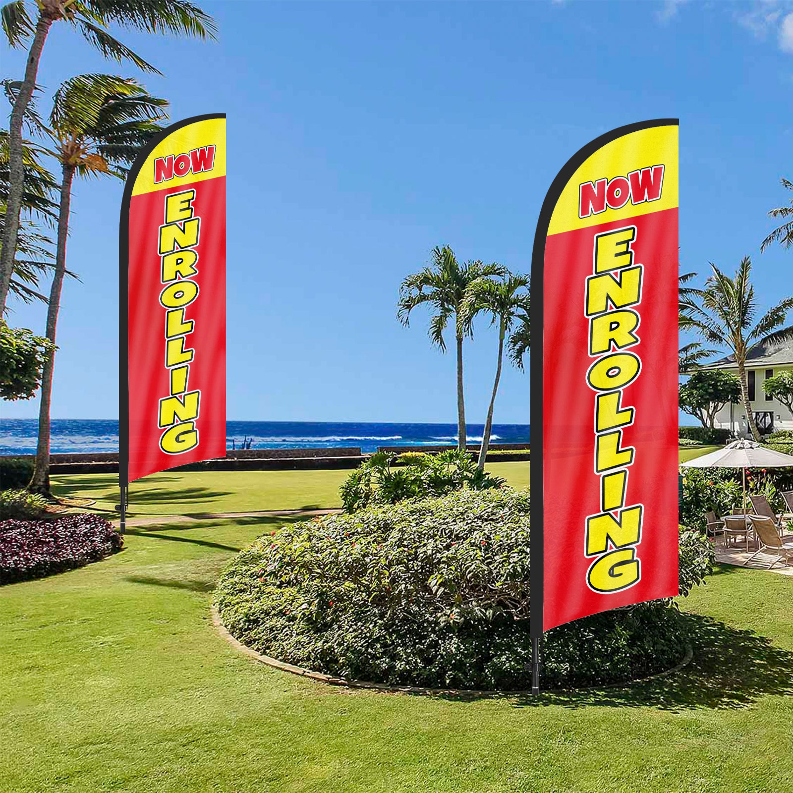 8ft Now Enrolling Red Feather Flag Pole Kit