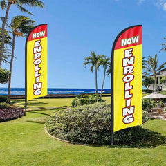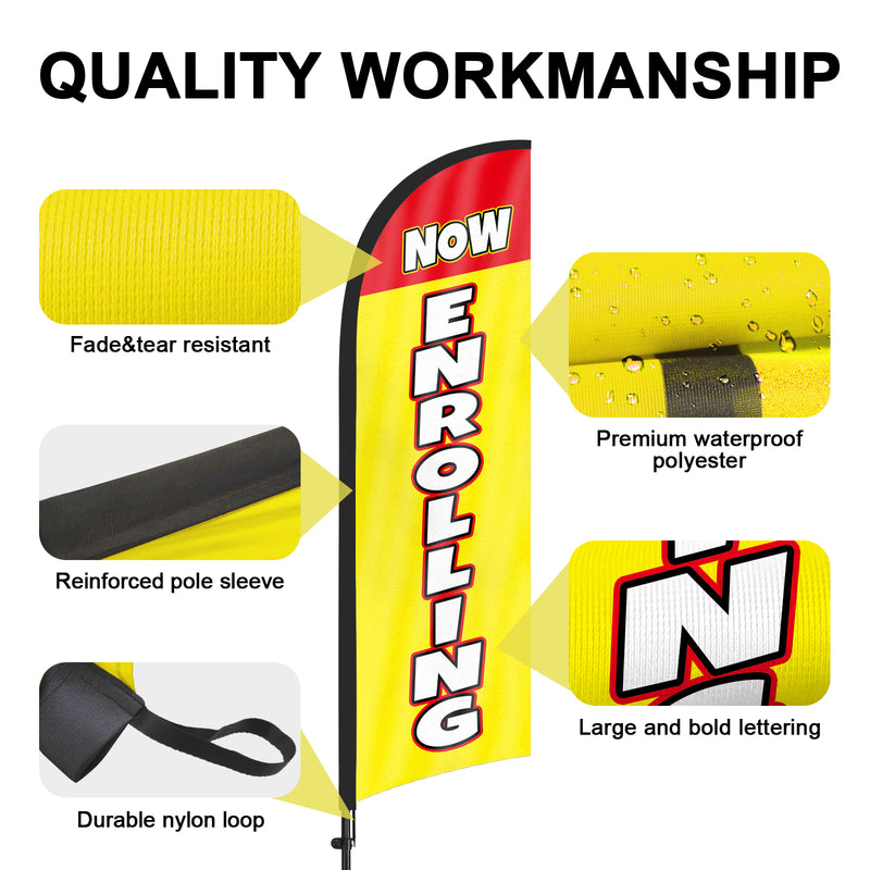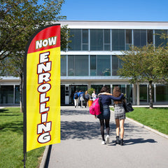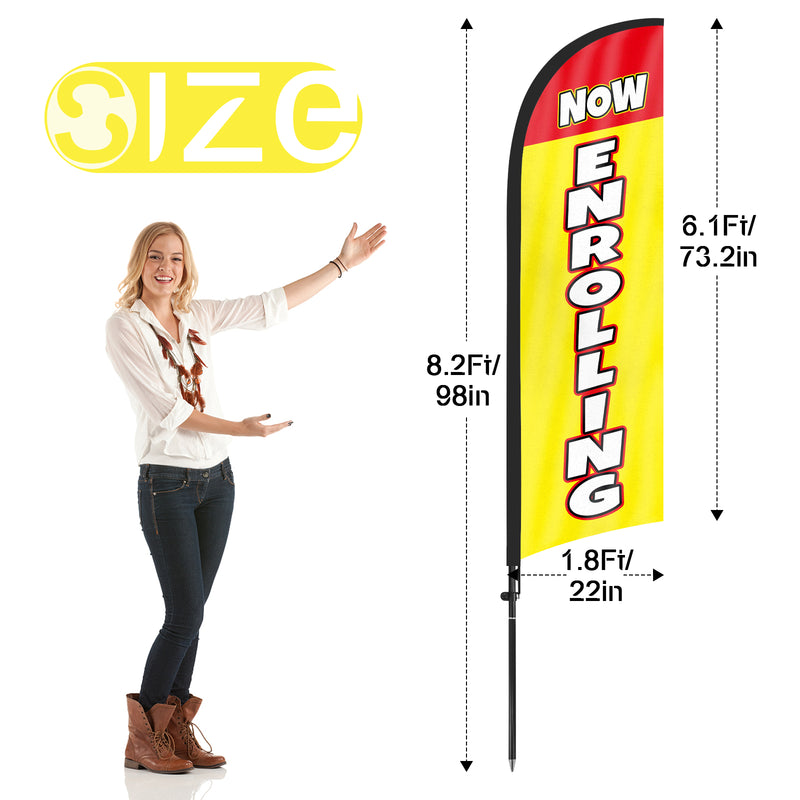 8ft Now Enrolling Yellow Feather Flag Pole Kit