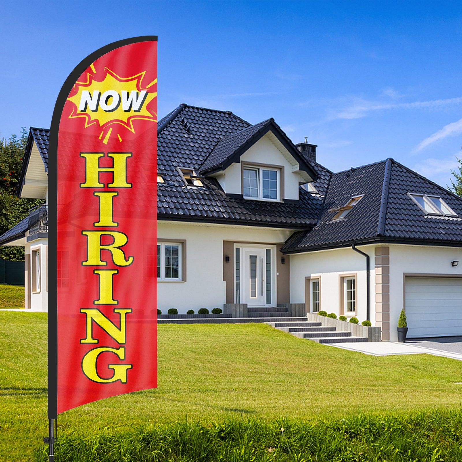 - 【Attention-Grabbing】Now Hiring feather flags stand tall and sway with the wind, making them highly visible and attention-grabbing. The Now Hiring flags’ unique shape and vibrant colors make them stand out in crowded environments, attracting many potential customers from a distance.