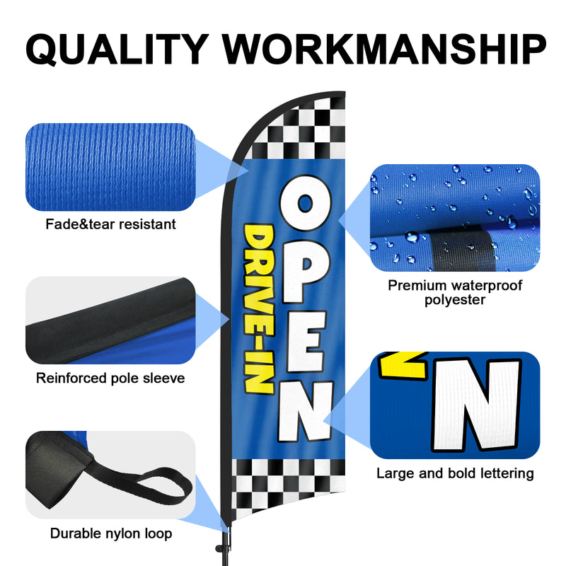8ft Open Drive-in Feather Flag with Pole and Stake