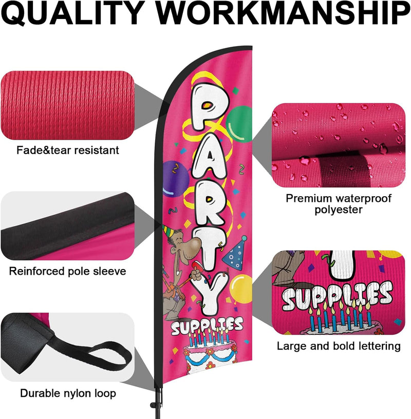 - 【Weather Resistance】These BBQ feather flags are designed to withstand various weather conditions, high-quality aluminum and fiberglass pole, tear resistant polyester fabric making it sturdy and heavy-duty to be held up well even in rain, snow, sleet and strong winds.