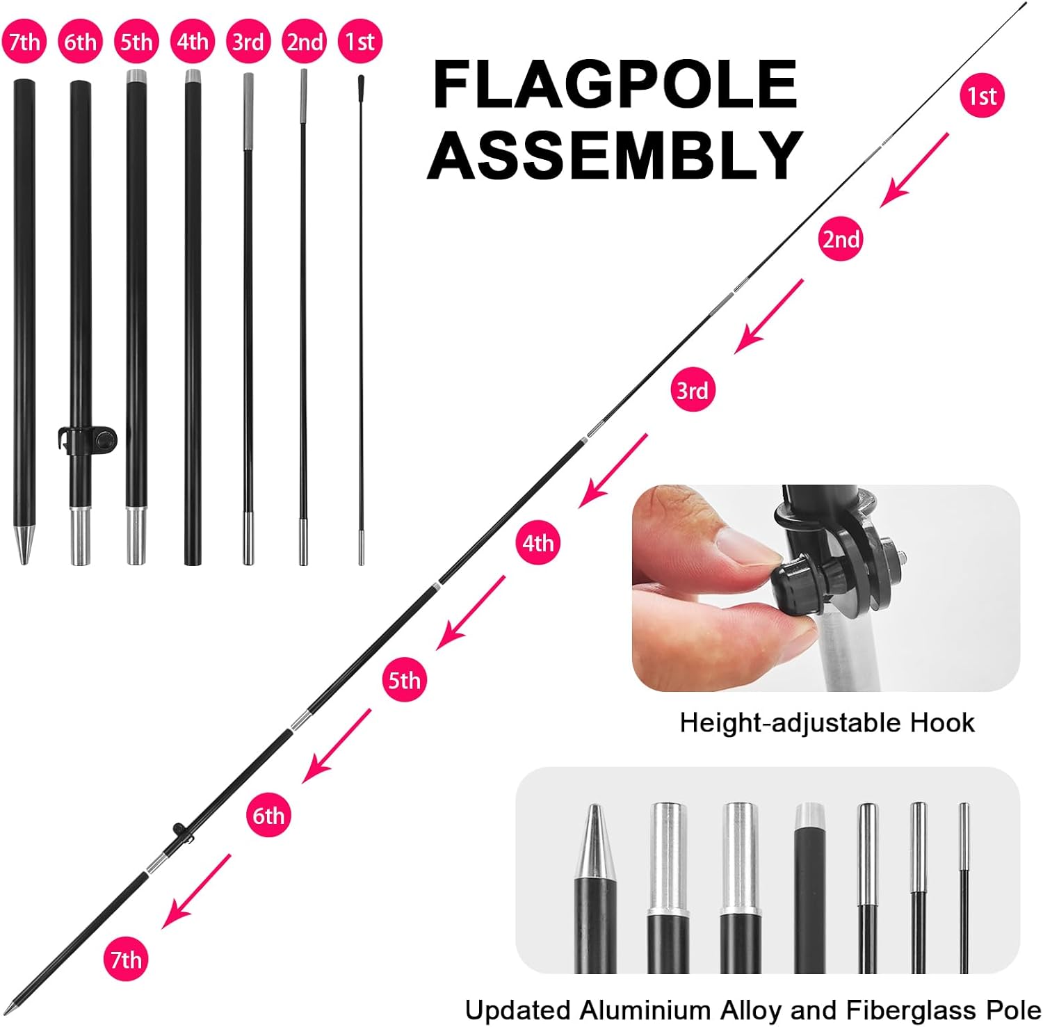 - 【Portable and Easy Setup】This BBQ feather flag pole kit includes 1 swooper flag+6 rods+1 ground stake and comes with 1 carry bag. They can be quickly set up and taken down, requiring minimal effort.