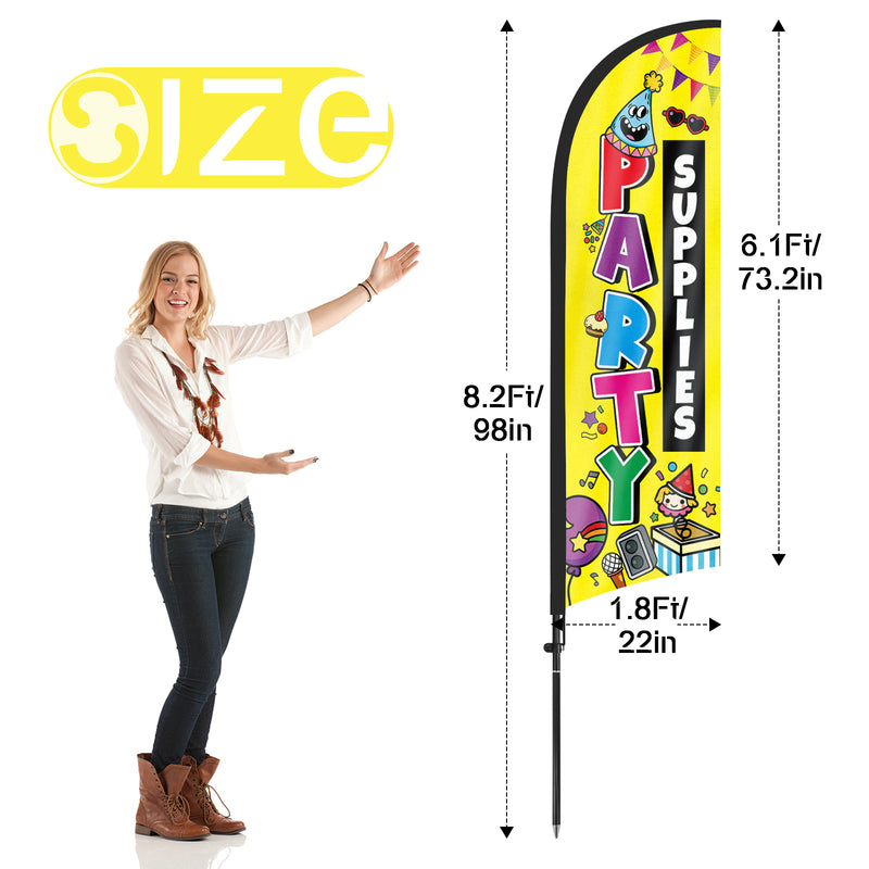 - 【Cost-Effective Advertising】The sign offer a cost-effective advertising solution compared to other traditional forms of outdoor advertising. This flag size is (8.2ft/98in) tall and (1.8ft/22in) wide, visible enough from far away, ensures your business stands out from the crowd, grabbing attention and increasing foot traffic.