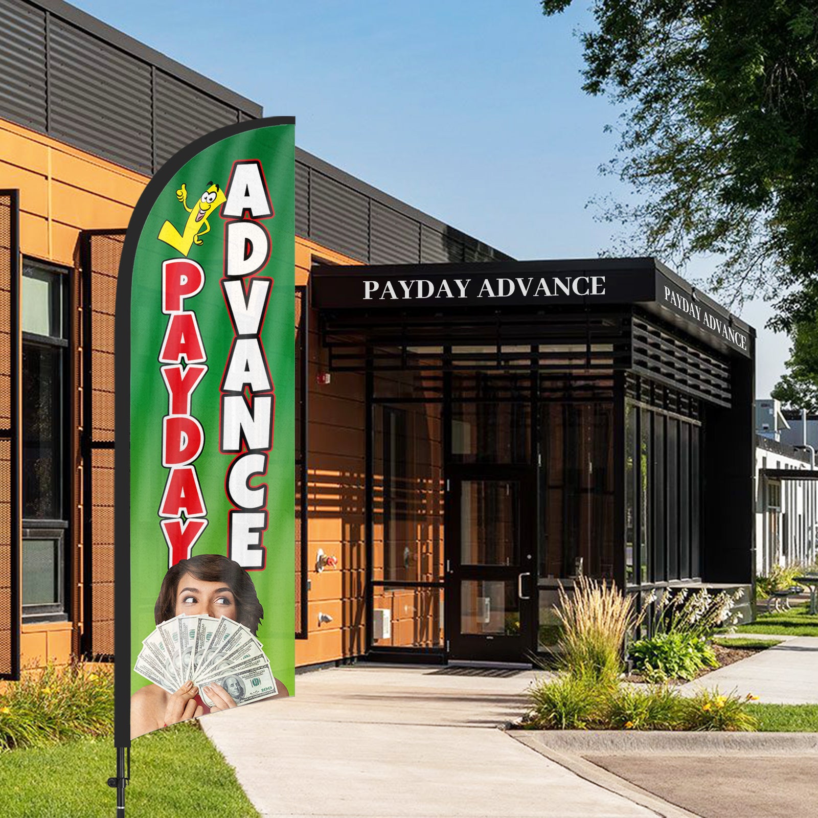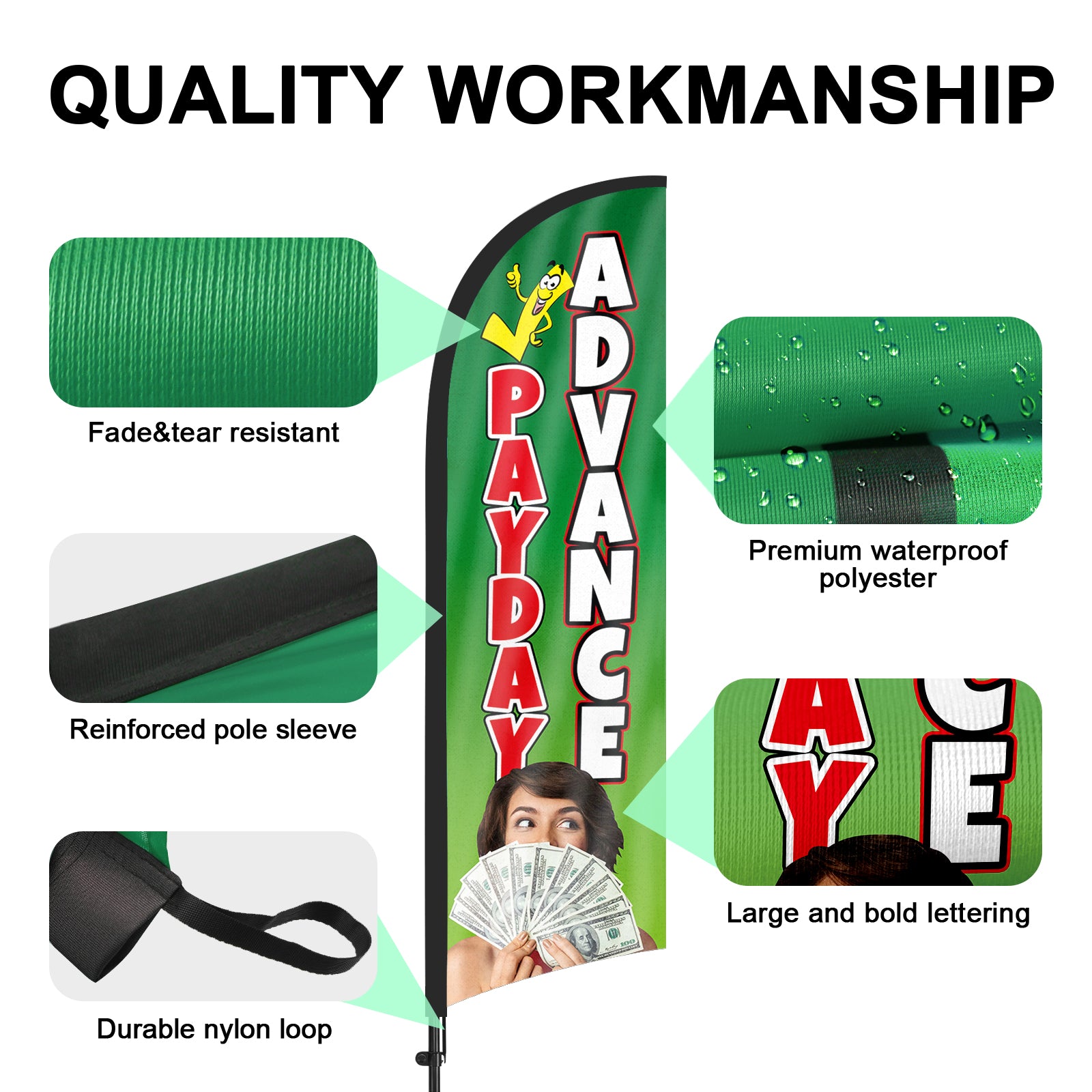 8Ft Payday Advance Green Feather Flag with Pole and Ground Stake
