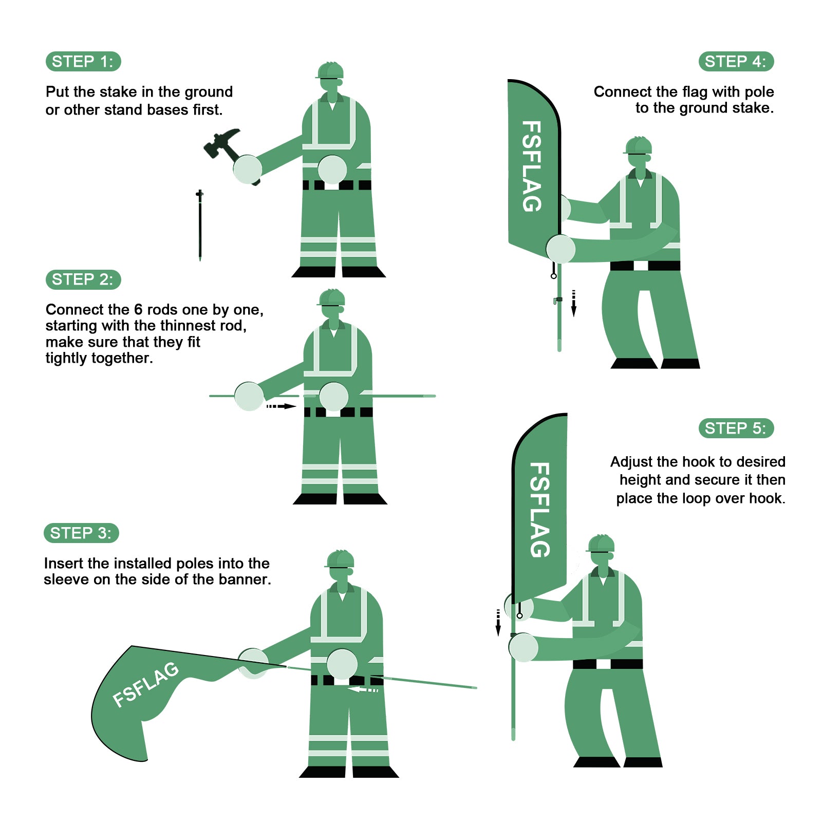 - 【Portable and Easy Setup】This feather flag pole kit includes 1 swooper flag+6 rods+1 ground stake and comes with 1 carry bag. They can be quickly set up and taken down, requiring minimal effort.