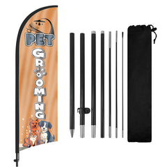 - 【Portable and Easy Setup】This Pet Grooming feather flag pole kit includes 1 swooper flag+6 rods+1 ground stake and comes with 1 storage bag. They can be quickly set up and taken down, requiring minimal effort.