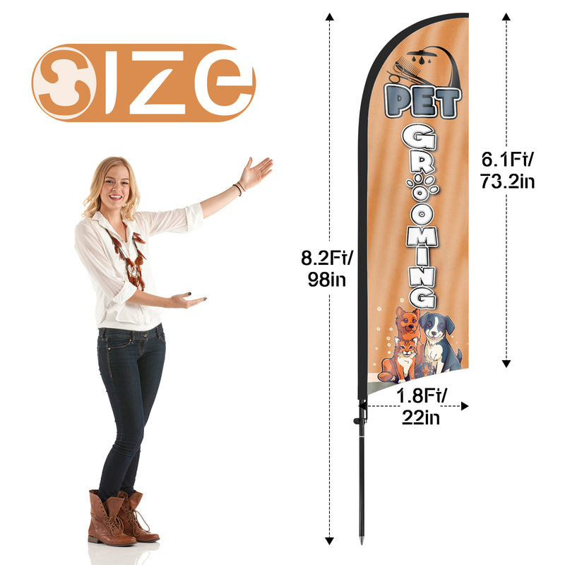 - 【Cost-Effective Advertising】The Pet Grooming sign offer a cost-effective advertising solution compared to other traditional forms of outdoor advertising. This Pet Grooming flag size is (8.2ft/98in) tall and (1.8ft/22in) wide, visible enough from far away, ensures your business stands out from the crowd, grabbing attention and increasing foot traffic.