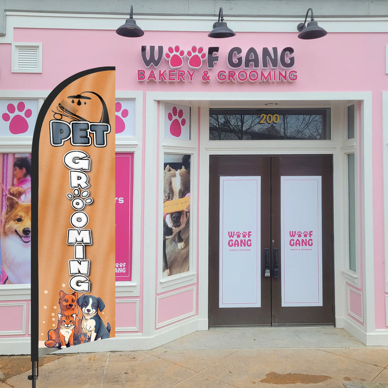 - 【Attention-Grabbing】Pet Grooming feather flags stand tall and sway with the wind, making them highly visible and attention-grabbing. The Pet Grooming flags’ unique shape and vibrant colors make them stand out in crowded environments, attracting many potential customers from a distance.