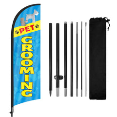 - 【Portable and Easy Setup】This Pet Grooming feather flag pole kit includes 1 swooper flag+6 rods+1 ground stake and comes with 1 storage bag. They can be quickly set up and taken down, requiring minimal effort.