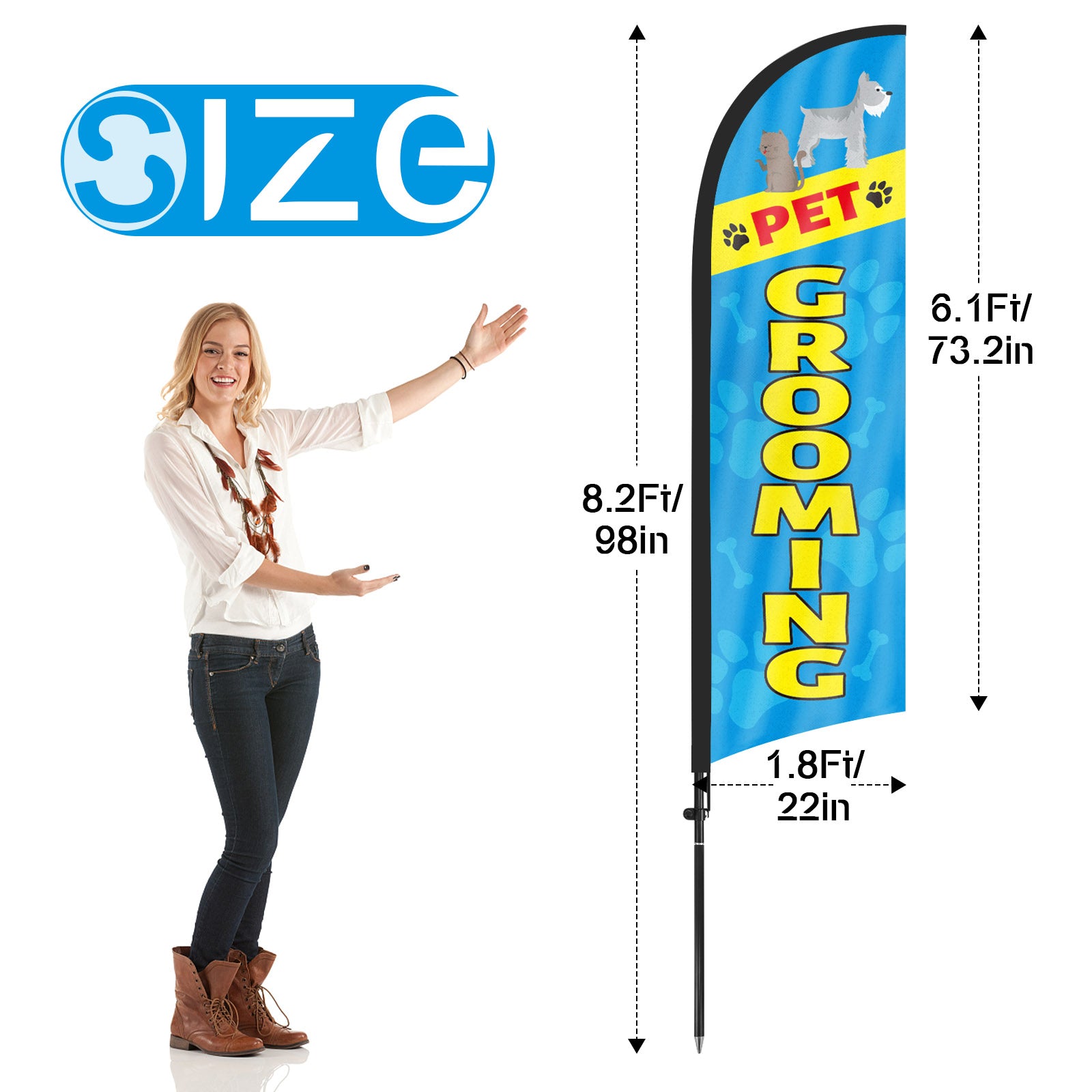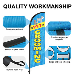 - 【Weather Resistance】These Pet Grooming feather flags are designed to withstand various weather conditions, high-quality aluminum and fiberglass pole, tear resistant polyester fabric making it sturdy and heavy-duty to be held up well even in rain, snow, sleet and strong winds.