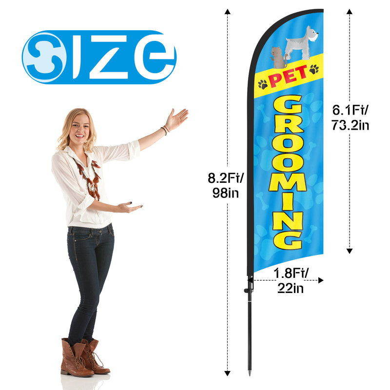 - 【Cost-Effective Advertising】The Pet Grooming sign offer a cost-effective advertising solution compared to other traditional forms of outdoor advertising. This Pet Grooming flag size is (8.2ft/98in) tall and (1.8ft/22in) wide, visible enough from far away, ensures your business stands out from the crowd, grabbing attention and increasing foot traffic.