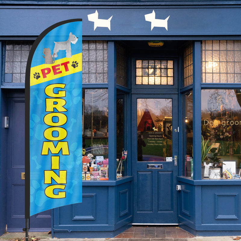 - 【Attention-Grabbing】Pet Grooming feather flags stand tall and sway with the wind, making them highly visible and attention-grabbing. The Pet Grooming flags’ unique shape and vibrant colors make them stand out in crowded environments, attracting many potential customers from a distance.