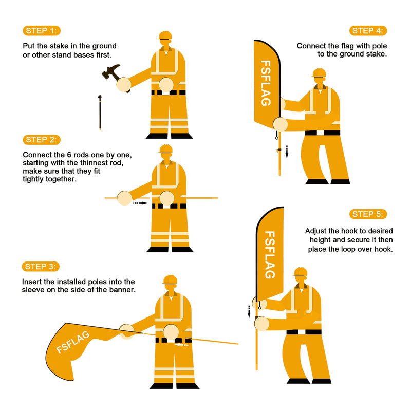 - 【Portable and Easy Setup】This feather flag pole kit includes 1 swooper flag+6 rods+1 ground stake and comes with 1 carry bag. They can be quickly set up and taken down, requiring minimal effort.