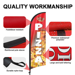- 【Weather Resistance】These Pizza feather flags are designed to withstand various weather conditions, high-quality aluminum and fiberglass pole, tear resistant polyester fabric making it sturdy and heavy-duty to be held up well even in rain, snow, sleet and strong winds.