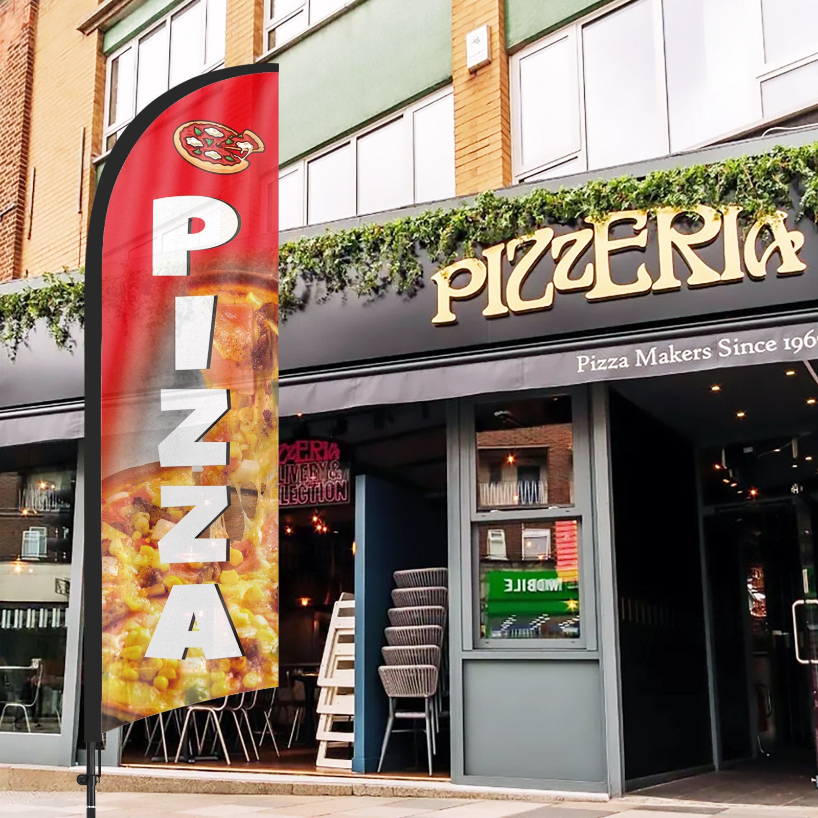 - 【Attention-Grabbing】Pizza feather flags stand tall and sway with the wind, making them highly visible and attention-grabbing. The Pizza flags’ unique shape and vibrant colors make them stand out in crowded environments, attracting many potential customers from a distance.