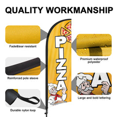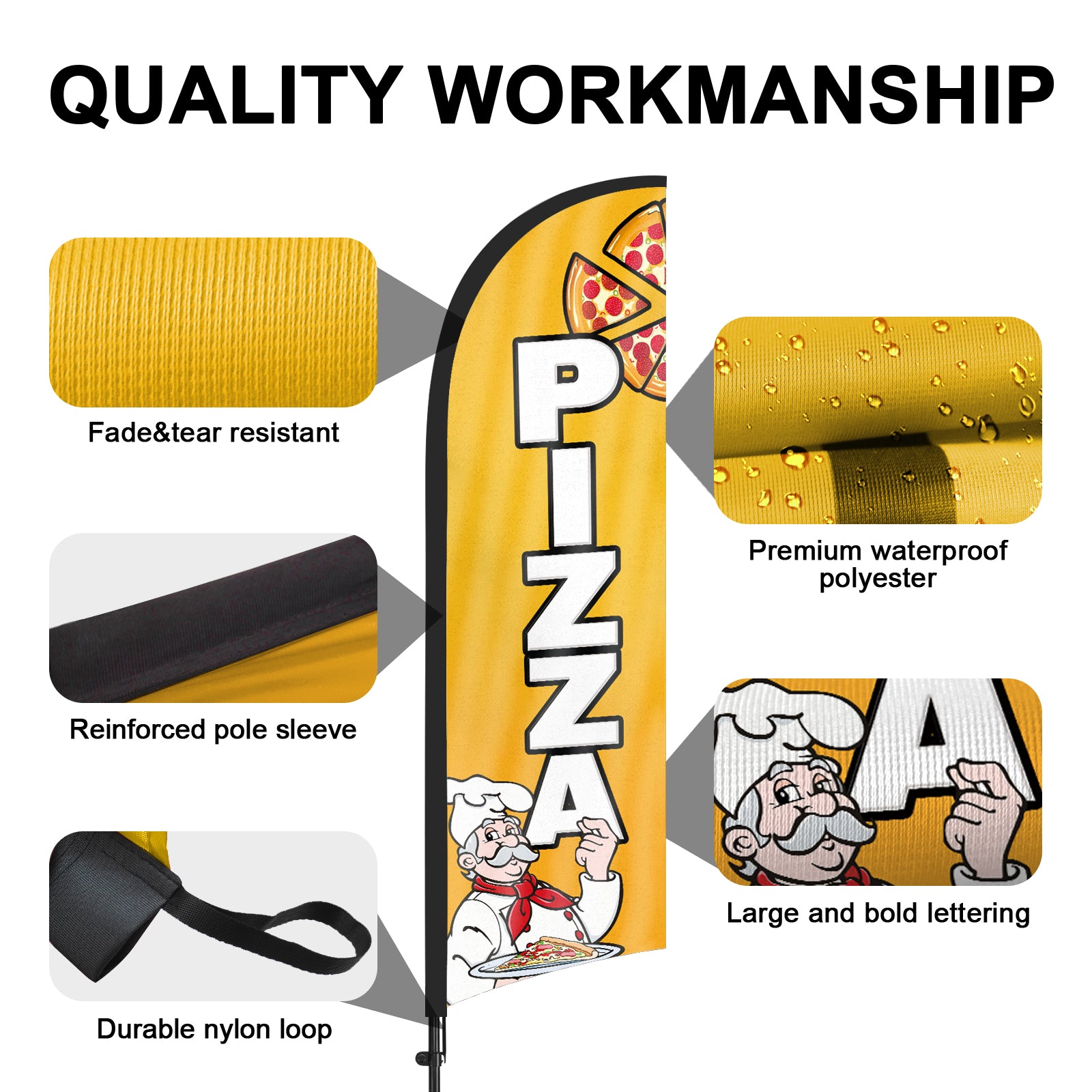 - 【Weather Resistance】These Pizza feather flags are designed to withstand various weather conditions, high-quality aluminum and fiberglass pole, tear resistant polyester fabric making it sturdy and heavy-duty to be held up well even in rain, snow, sleet and strong winds.