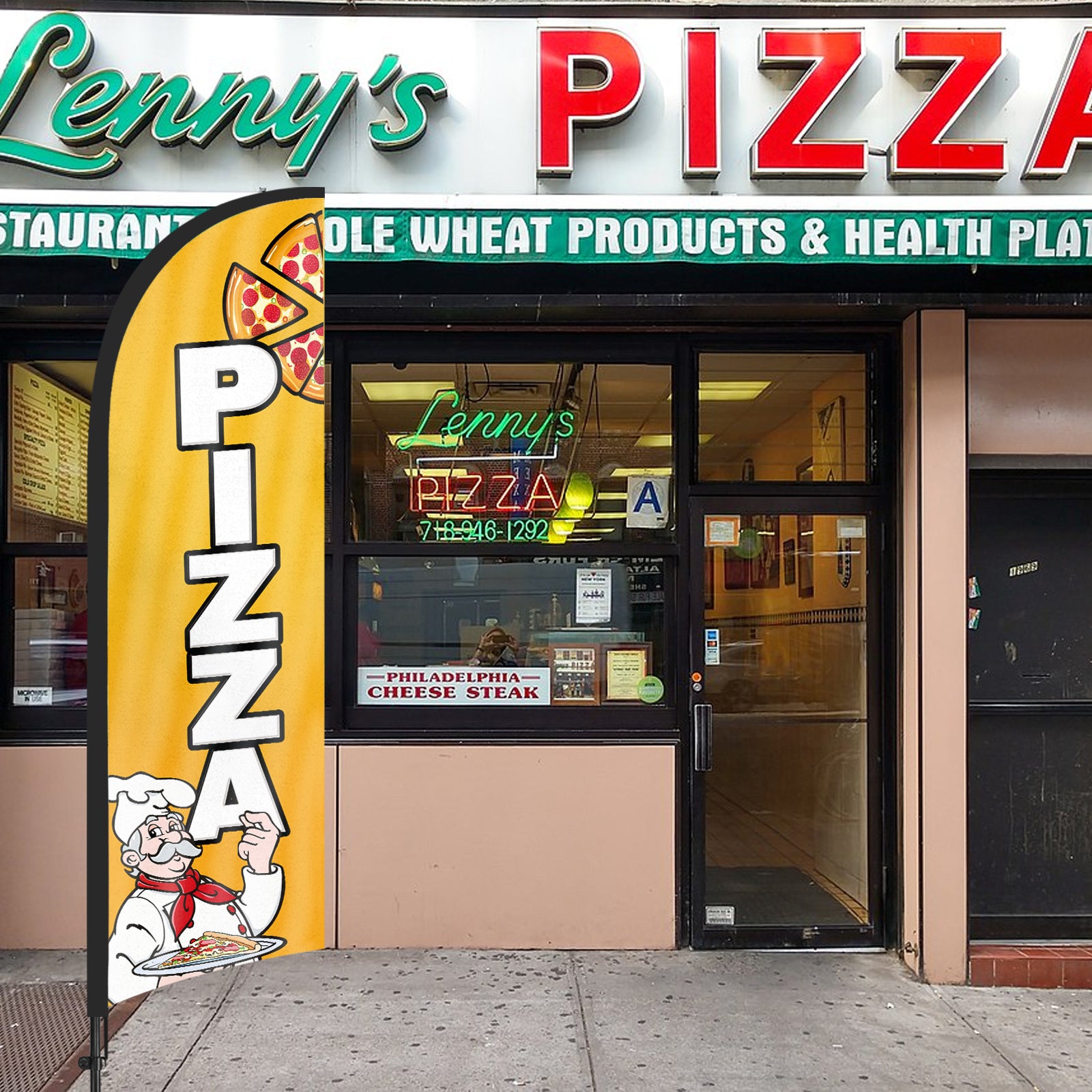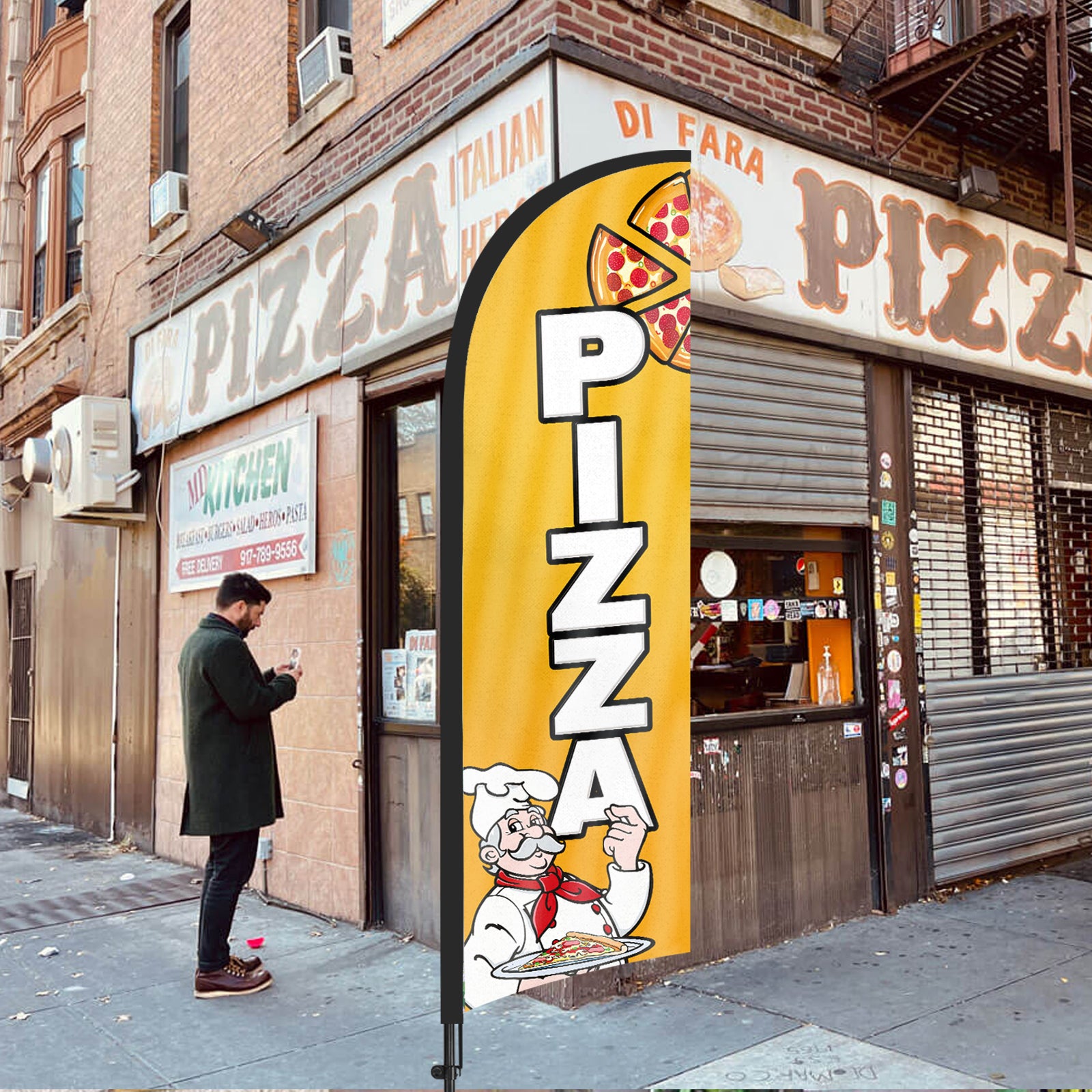- 【Cost-Effective Advertising】The Pizza sign offer a cost-effective advertising solution compared to other traditional forms of outdoor advertising. This Pizza flag size is (8.2ft/98in) tall and (1.8ft/22in) wide, visible enough from far away, ensures your business stands out from the crowd, grabbing attention and increasing foot traffic.