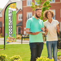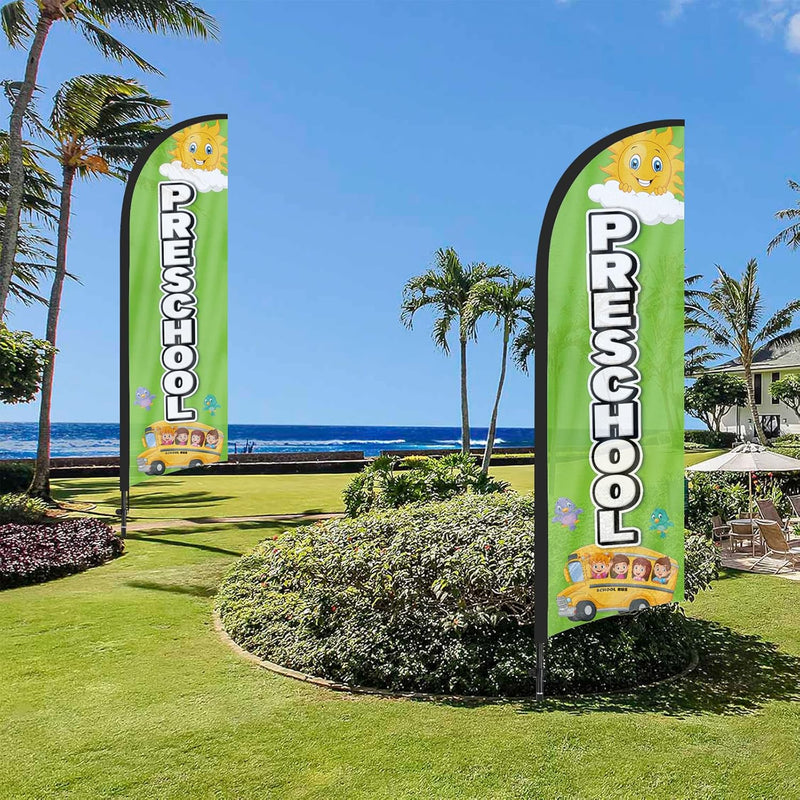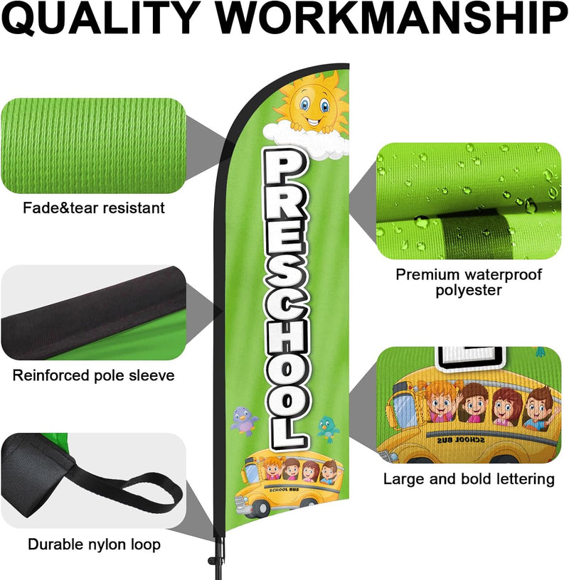 - 【Cost-Effective Advertising】The Preschool sign offer a cost-effective advertising solution compared to other traditional forms of outdoor advertising. This Preschool flag size is (8.2ft/98in) tall and (1.8ft/22in) wide, visible enough from far away, ensures your business stands out from the crowd, grabbing attention and increasing foot traffic.