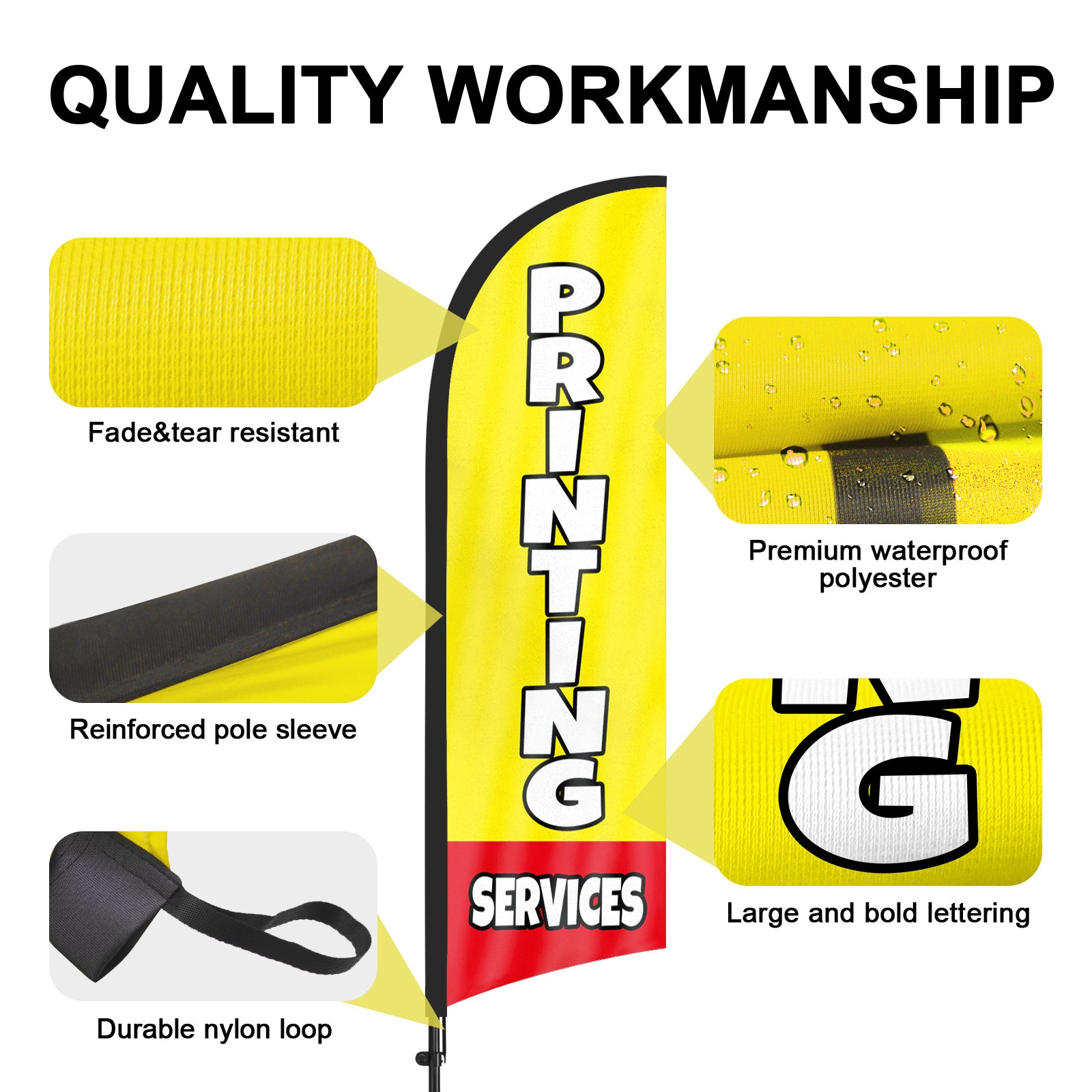 8Ft Printing Services Yellow Feather Flag with Pole & Stake
