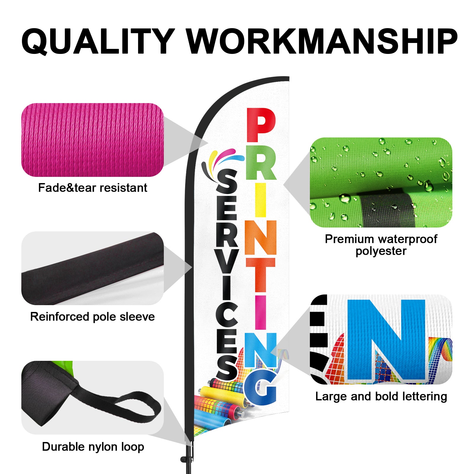 - 【Attention-Grabbing】This feather flags stand tall and sway with the wind, making them highly visible and attention-grabbing. The flags’ unique shape and vibrant colors make them stand out in crowded environments, attracting many potential customers from a distance.