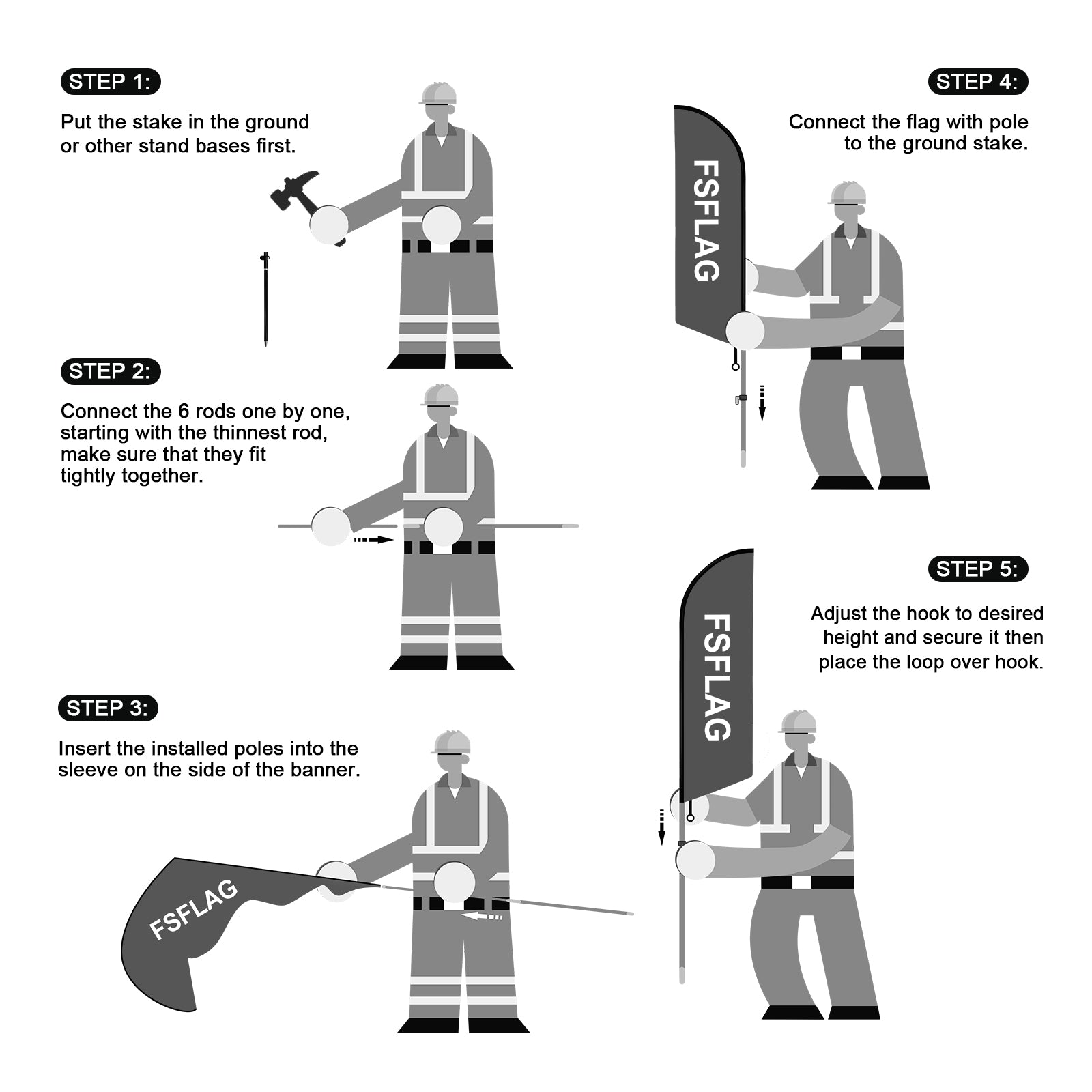 - 【Portable and Easy Setup】This feather flag pole kit includes 1 swooper flag+6 rods+1 ground stake and comes with 1 carry bag. They can be quickly set up and taken down, requiring minimal effort.