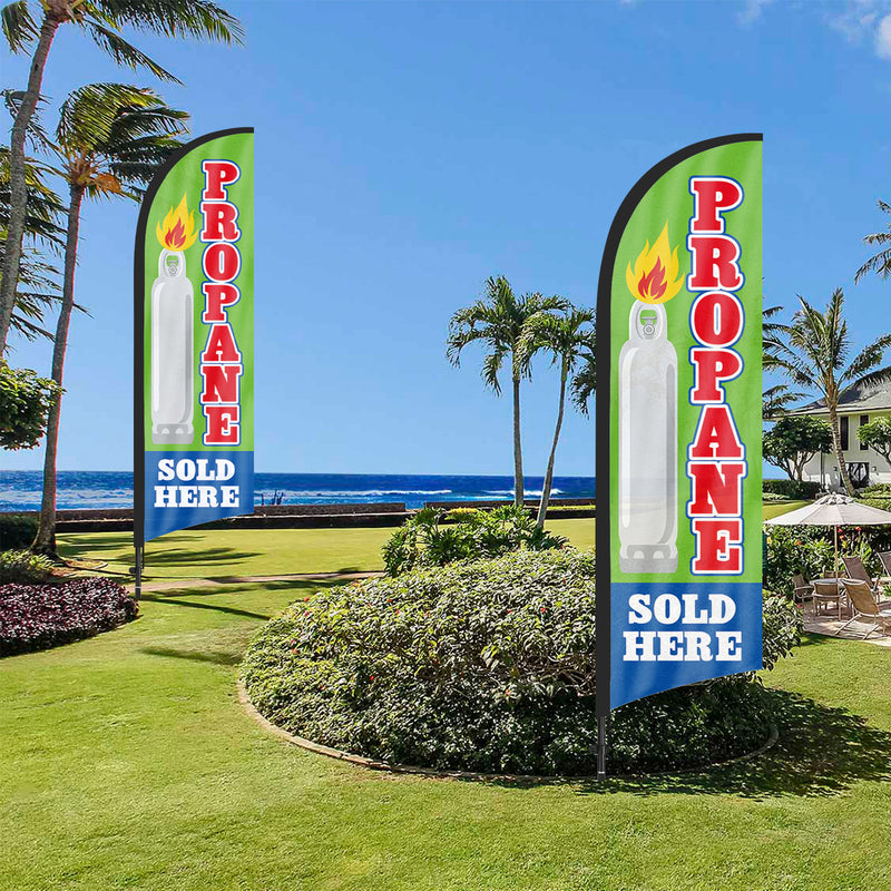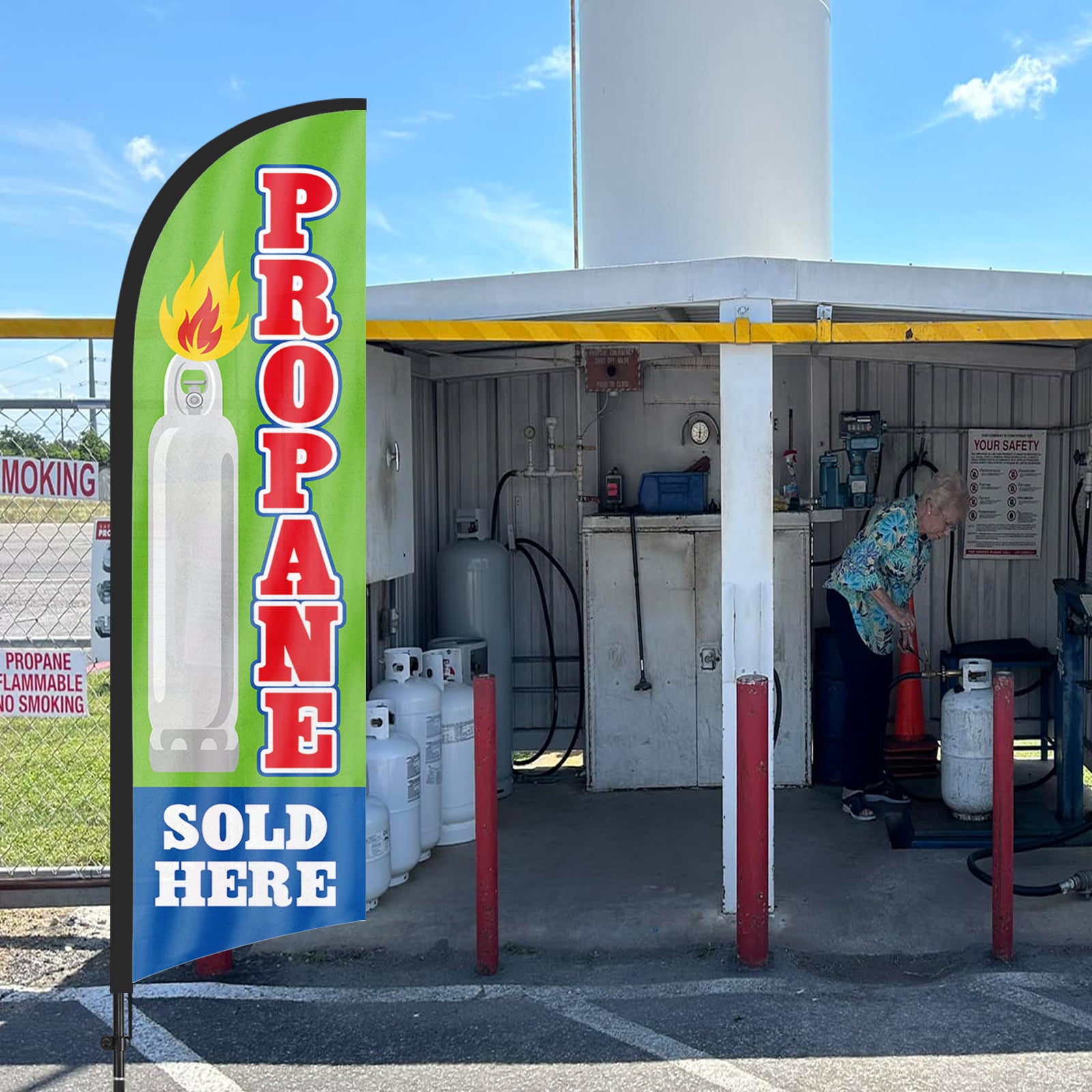- 【Attention-Grabbing】Propane Sold Here feather flags stand tall and sway with the wind, making them highly visible and attention-grabbing. The Propane Sold Here flags’ unique shape and vibrant colors make them stand out in crowded environments, attracting many potential customers from a distance.