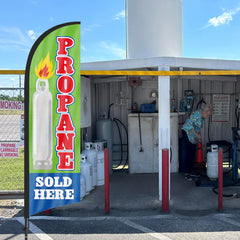 - 【Portable and Easy Setup】This Propane Sold Here feather flag pole kit includes 1 swooper flag+6 rods+1 ground stake and comes with 1 carry bag. They can be quickly set up and taken down, requiring minimal effort.