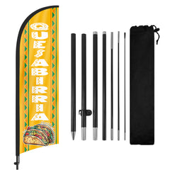 - 【Portable and Easy Setup】This Quesabirria feather flag pole kit includes 1 swooper flag+6 rods+1 ground stake and comes with 1 storage bag. They can be quickly set up and taken down, requiring minimal effort.