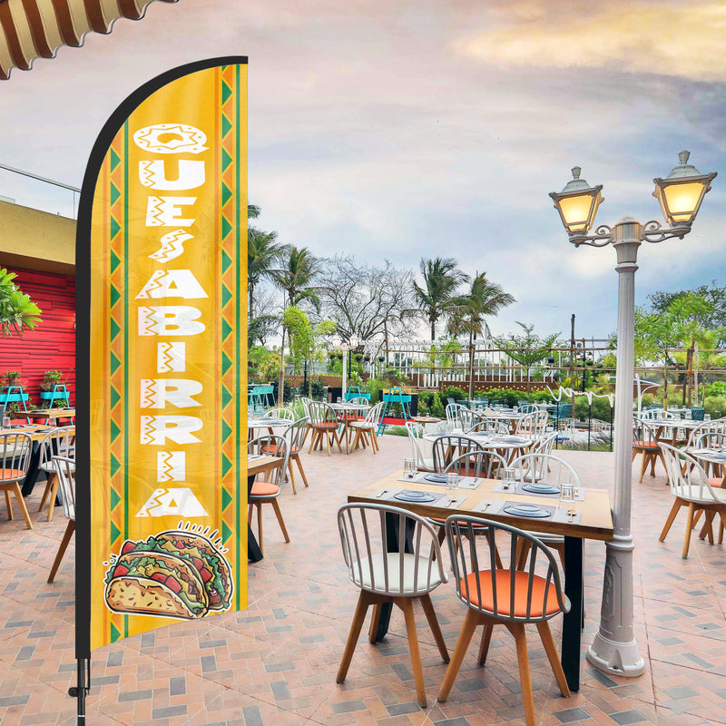 - 【Attention-Grabbing】Mexican Food banner stand tall and sway with the wind, making them highly visible and attention-grabbing. The Quesabirria flags’ unique shape and vibrant colors make them stand out in crowded environments, attracting many potential customers from a distance.
