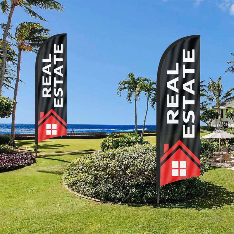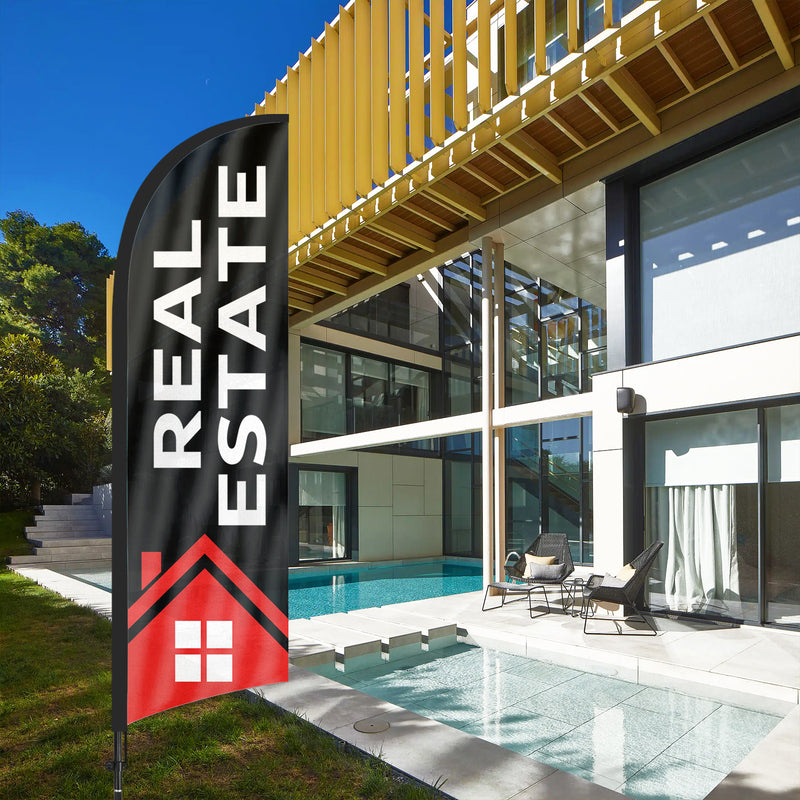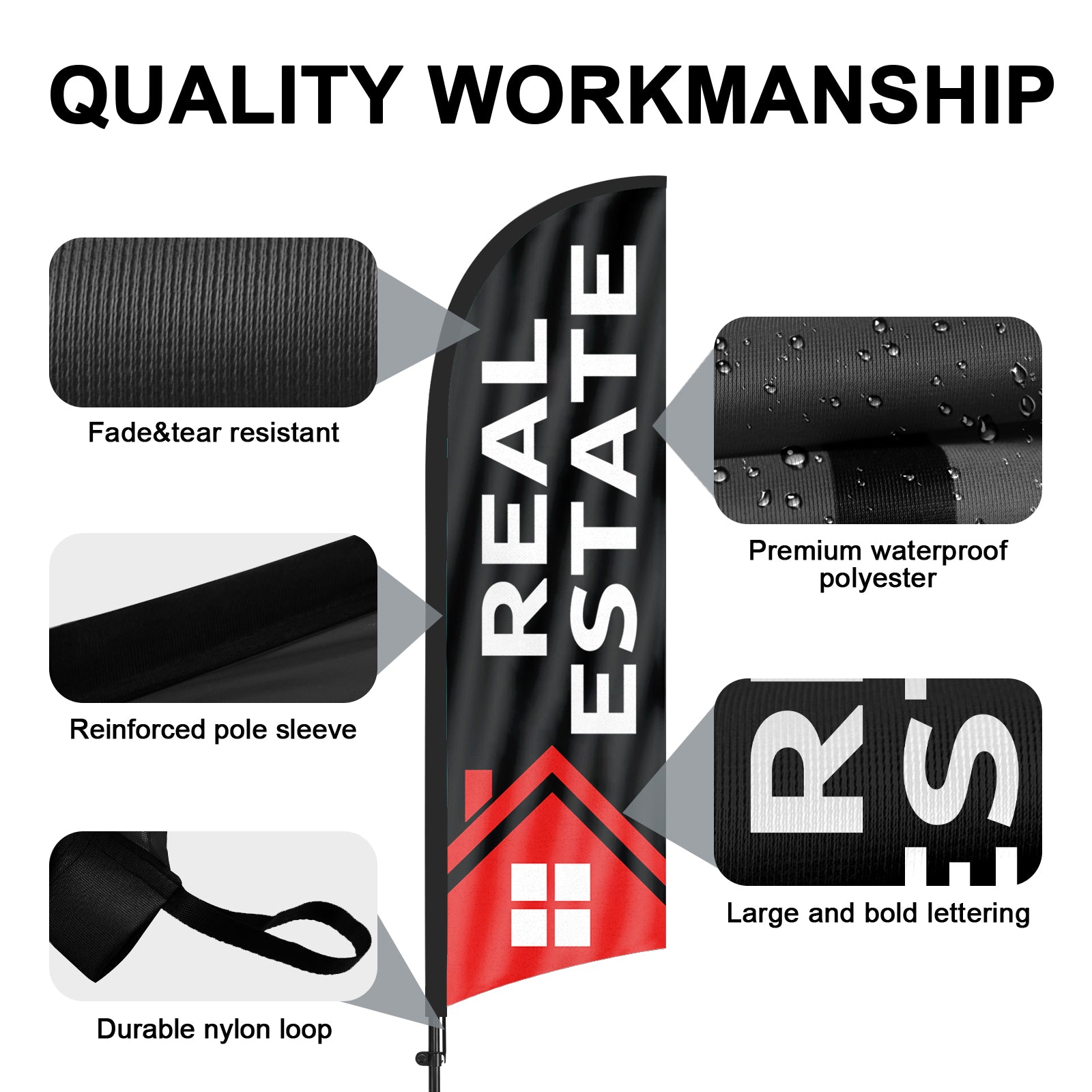 - 【Attention-Grabbing】Real Estate sign agents stand tall and sway with the wind, making them highly visible and attention-grabbing. The Real Estate flags’ unique shape and vibrant colors make them stand out in crowded environments, attracting many potential customers from a distance.