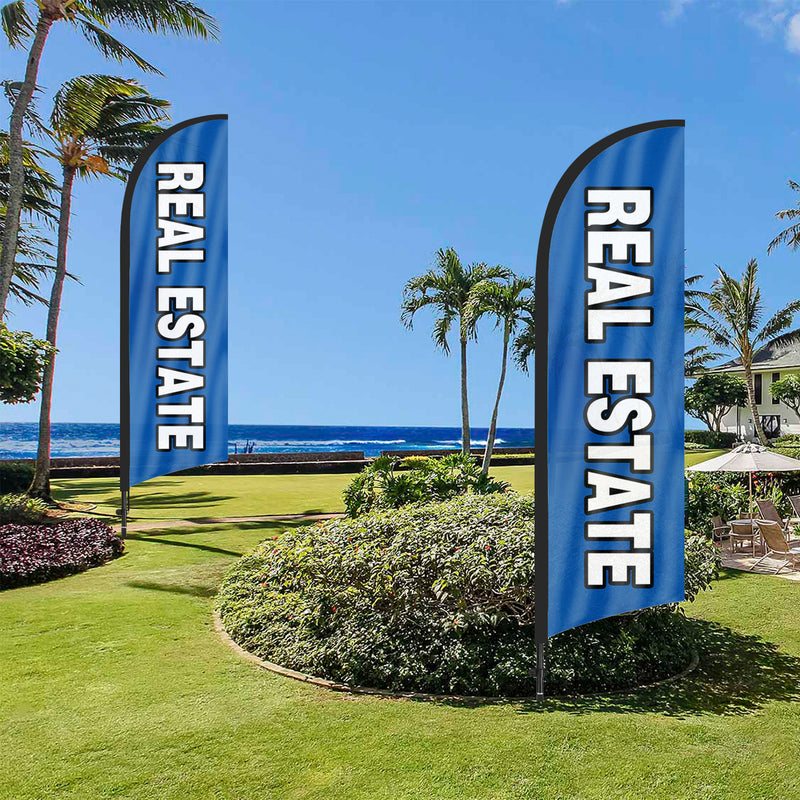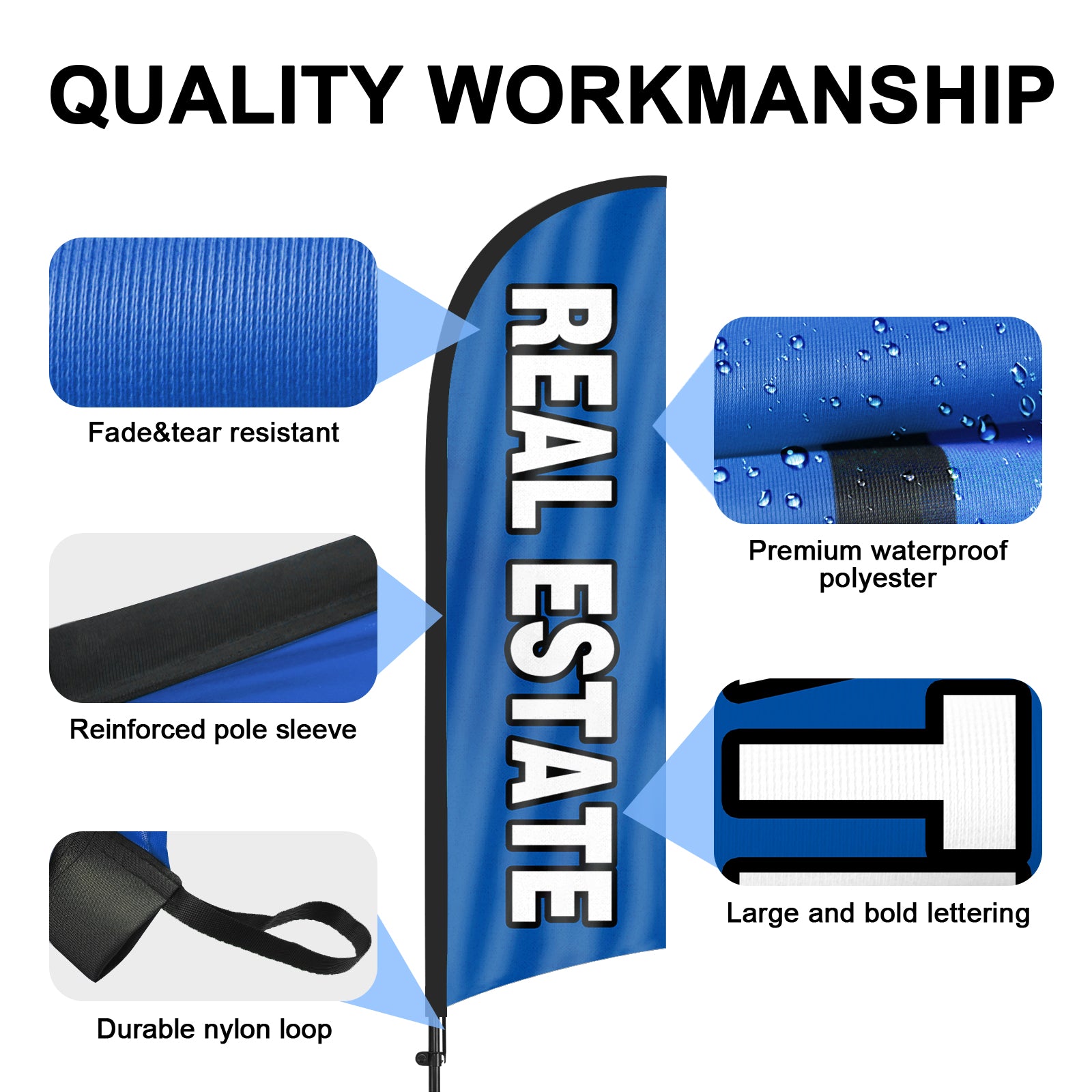 - 【Attention-Grabbing】Real Estate sign agents stand tall and sway with the wind, making them highly visible and attention-grabbing. The Real Estate flags’ unique shape and vibrant colors make them stand out in crowded environments, attracting many potential customers from a distance.