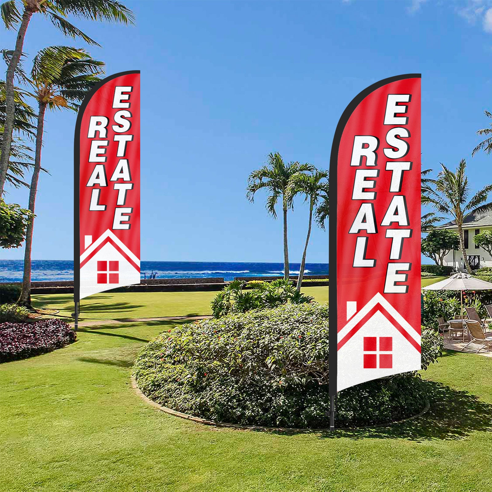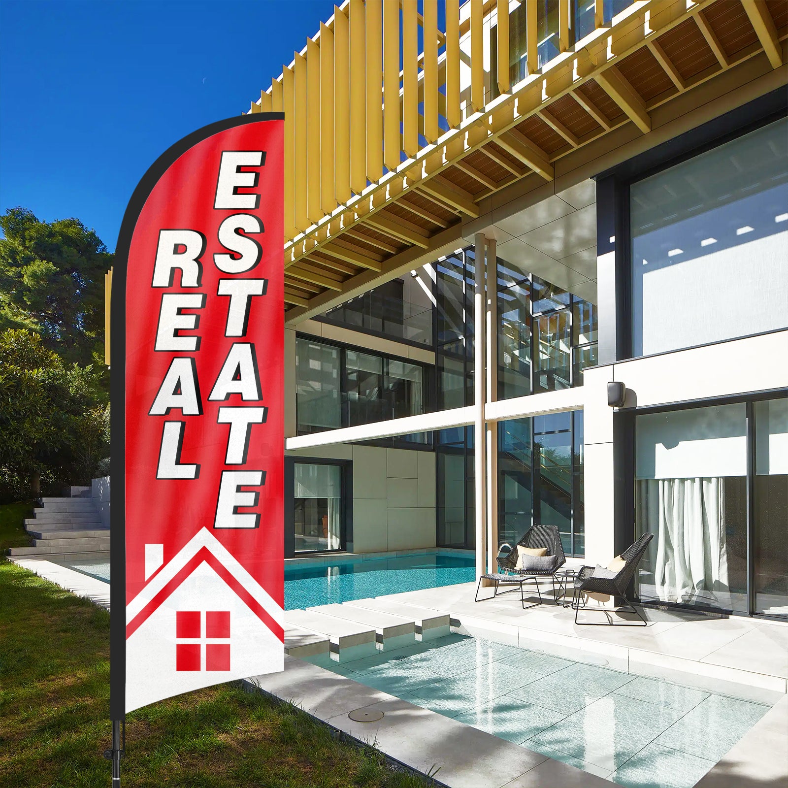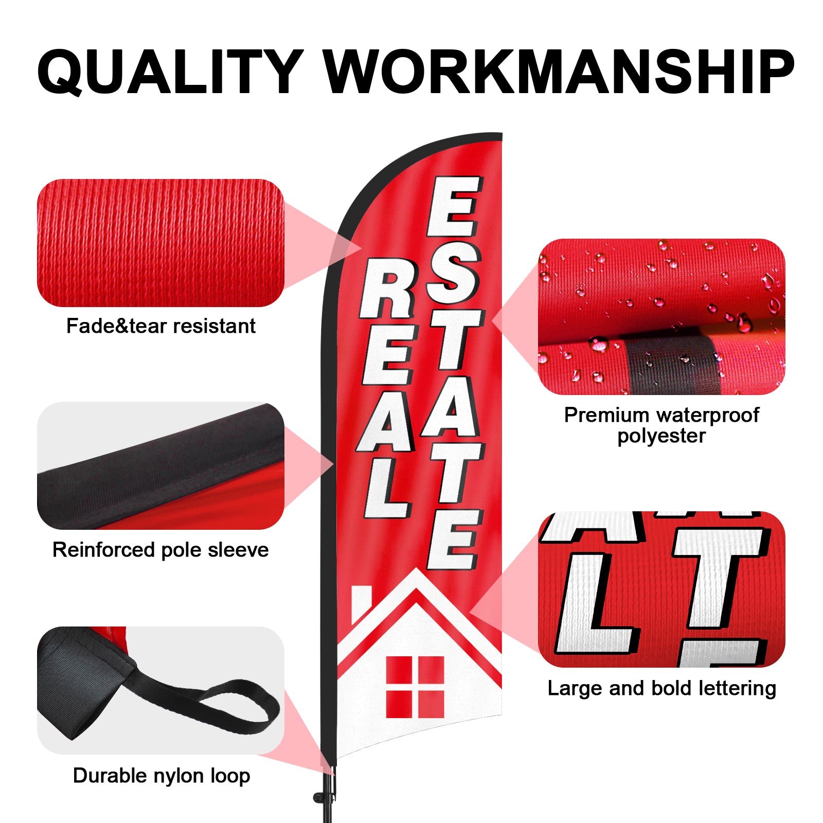 - 【Attention-Grabbing】Real Estate sign agents stand tall and sway with the wind, making them highly visible and attention-grabbing. The Real Estate flags’ unique shape and vibrant colors make them stand out in crowded environments, attracting many potential customers from a distance.