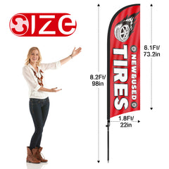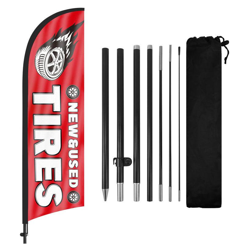 - 【Portable and Easy Setup】This New&Used Tires feather flag pole kit includes 1 swooper flag+6 rods+1 ground stake and comes with 1 carry bag. They can be quickly set up and taken down, requiring minimal effort.
