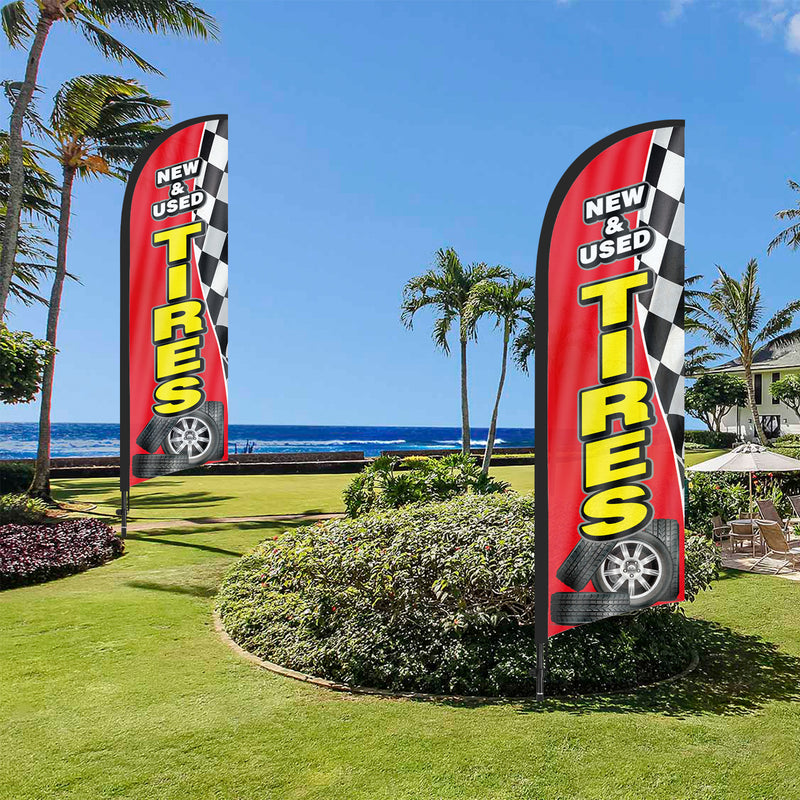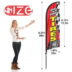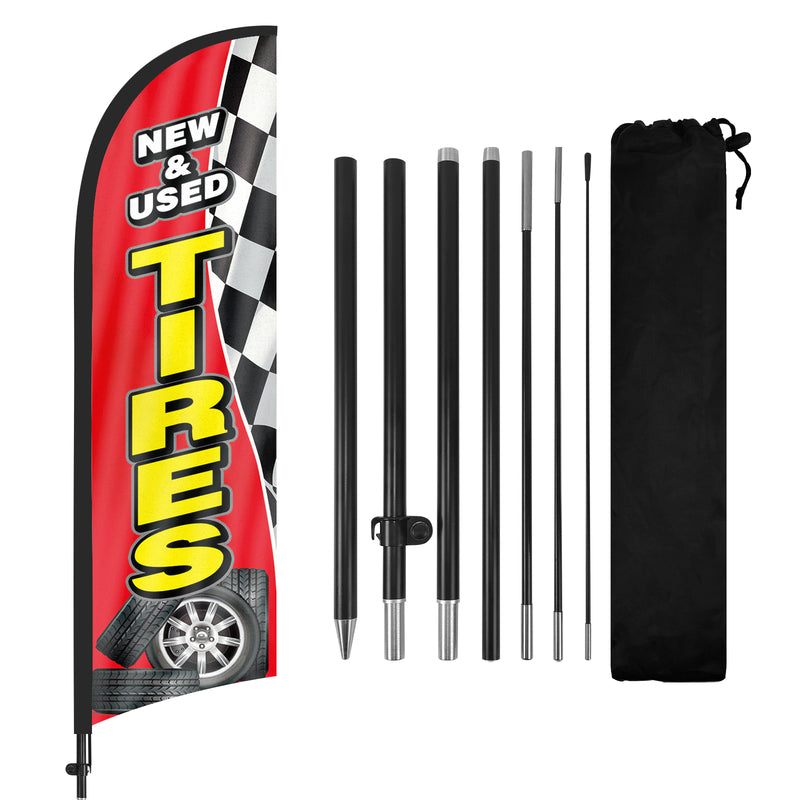 - 【Portable and Easy Setup】This New&Used Tires feather flag pole kit includes 1 swooper flag+6 rods+1 ground stake and comes with 1 carry bag. They can be quickly set up and taken down, requiring minimal effort.
