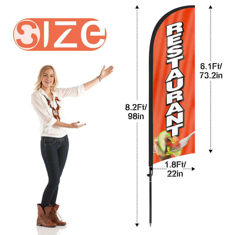 8ft Restaurant Feather Flag Kit with Pole and Stake
