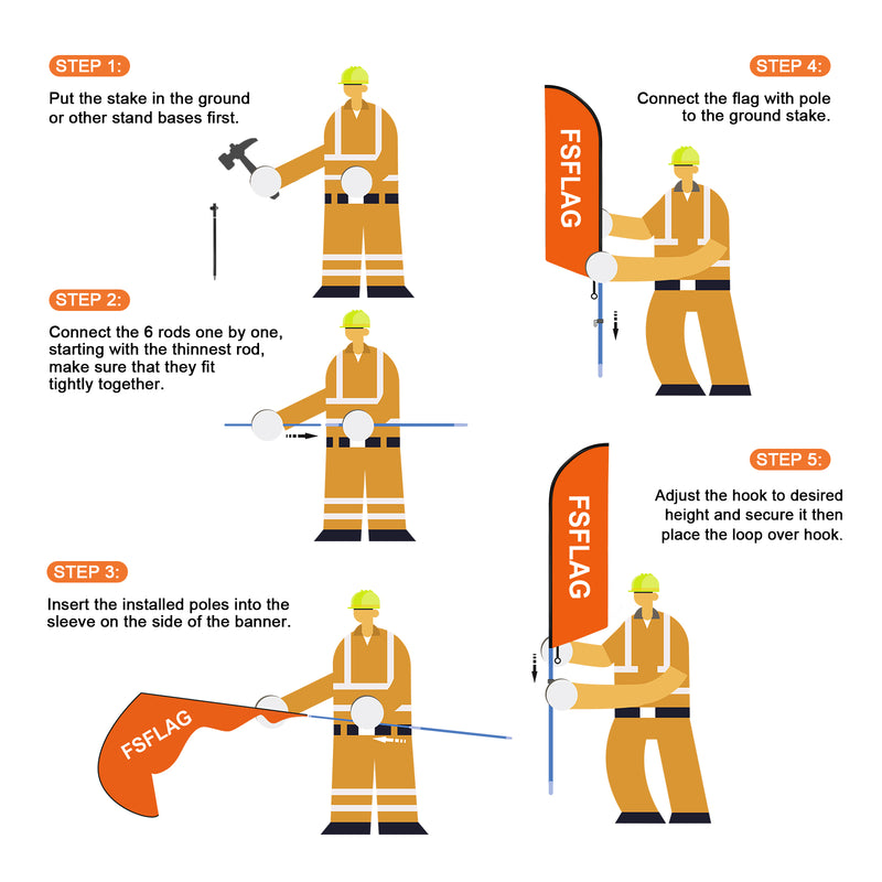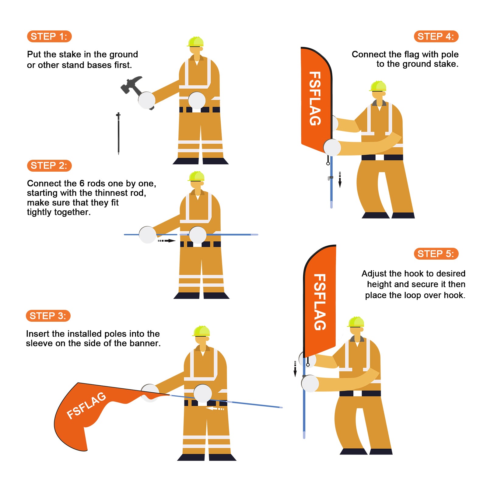 【Portable and Easy Setup】 This pizza feather flag pole kit includes 1 swooper flag+6 rods+1 ground stake and comes with 1 storage bag. They can be quickly set up and taken down, requiring minimal effort.
