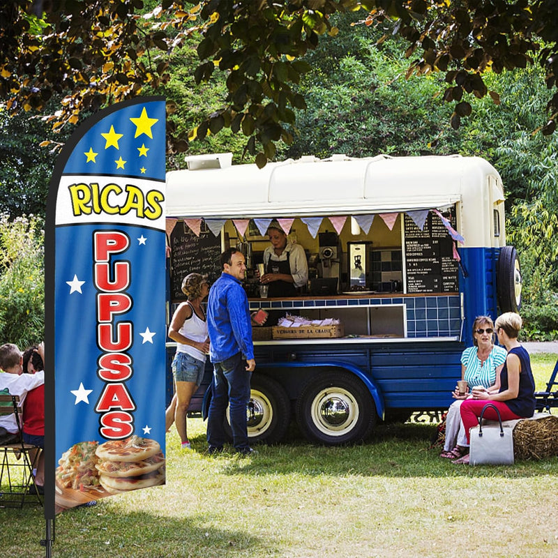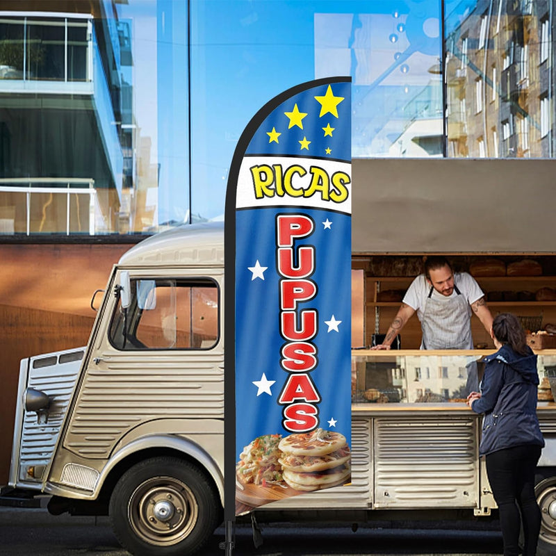 - 【Attention-Grabbing】Ricas Pupusas feather flags stand tall and sway with the wind, making them highly visible and attention-grabbing. The Ricas Pupusas flags’ unique shape and vibrant colors make them stand out in crowded environments, attracting many potential customers from a distance.